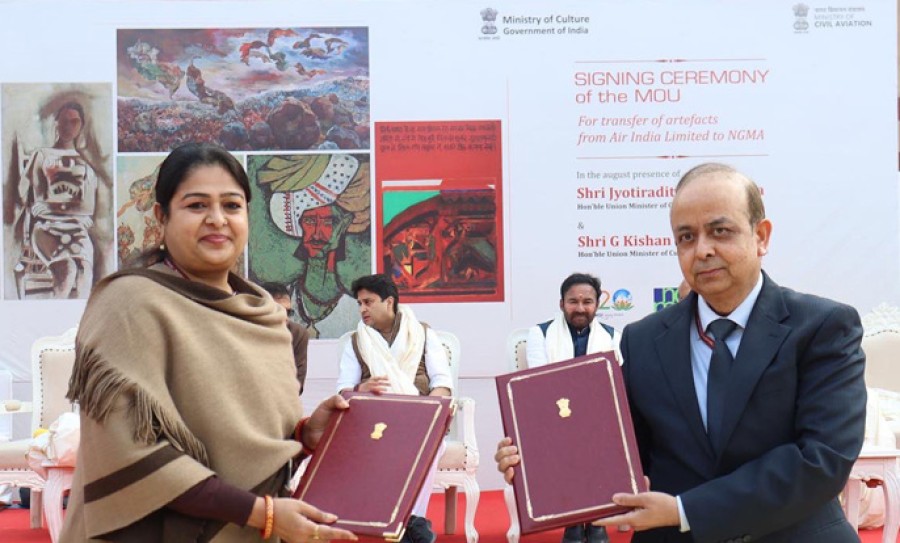 संस्कृति मंत्री जी किशन रेड्डी ने कहाकि ऐतिहासिक समझौता ज्ञापन के माध्यम से 1953 से एयर इंडिया के बेशकीमती कलाकृतियों का संग्रह संस्कृति मंत्रालय के एनजीएमए को हस्तांतरित किया जा रहा है। जी किशन रेड्डी ने कहाकि पेंटिंग, कलाकृतियों को अब अपना सही स्थान यानी नेशनल गैलरी ऑफ मॉडर्न आर्ट्स मिलेगा, प्रधानमंत्री के विजन 'विकास भी विरासत भी' के अनुरूप संस्कृति मंत्रालय अपनी संस्कृति को संरक्षित करने और इसे लोगों के सामने लाने और युवाओं केसाथ अपना जुड़ाव स्थापित करने केलिए सभी प्रयास कर रहा है। उन्होंने कहाकि एयर इंडिया और नागरिक उड्डयन मंत्रालय ने इन मूल्यवान कलाकृतियों को संरक्षित और सुरक्षित करने केलिए कड़ी मेहनत की है, इसलिए मैं वादा करता हूंकि आनेवाली पीढ़ियों केलिए हम इन कलाकृतियों को संरक्षित रखेंगे। उन्होंने कहाकि यह अभिनव डिजिटल इंटरफेस के जरिए विदेशों में दर्शकों केलिए भी खोला जाएगा। उन्होंने एनजीएमए के कला खजाने में बहुमूल्य योगदान केलिए नागरिक उड्डयन मंत्रालय और एयर इंडिया को धन्यवाद दिया। गौरतलब हैकि एनजीएमए ने 1850 केबाद से कला के कार्यों का अधिग्रहण और संरक्षण किया है, एनजीएमए का कला संग्रह विशाल और उदार है, इसके भीतर 18,000 कलाकृतियां एक समृद्ध और गौरवशाली अतीत को दर्शाने केसाथ वे वर्तमान को धन्यवाद देती हैं। इसके खजाने में मिनिएचर पेंटिंग से लेकर आधुनिकतावादी कलाकृतियों और आधुनिक समकालीन कलाकृतियां शामिल हैं।