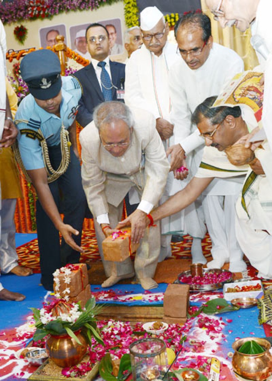 भोपाल। राष्ट्रपति प्रणब मुखर्जी ने गुरूवार को भोपाल में अटल बिहारी वाजपेयी हिंदी विश्वविद्यालय की आधारशिला रखी। प्रणब मुखर्जी ने कहा कि सरकार तथा जनता के बीच भाषा की महत्त्वपूर्ण भूमिका है, सामाजिक कल्याण तथा विकास के कार्यक्रमों की सफलता भाषा पर निर्भर करती है, इसलिए हमें हिंदी तथा क्षेत्रीय भाषाओं को बढ़ावा देना चाहिए, हमारे राष्ट्र को जोड़ने में हिंदी का अह्म योगदान है, यह भारत की सामाजिक तथा सांस्कृतिक एकता का प्रतीक है। इस अवसर पर 'अटल संवाद' नामक एक न्यूज़लेटर भी जारी किया गया, जिसकी पहली प्रति राष्ट्रपति को भेंट की गई।