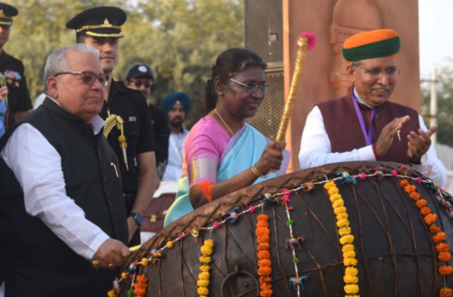 राष्ट्रपति द्रौपदी मुर्मु ने कहाकि 14वें राष्ट्रीय संस्कृति महोत्सव में आकर और कला तथा संस्कृति के राष्ट्रीय उत्सव का उद्घाटन करके बहुत प्रसन्नता का अनुभव हो रहा है और उन्हें बताया गया हैकि यह उत्सव देश के विभिन्न राज्यों में आयोजित किया जा चुका है और पहलीबार इसका आयोजन राजस्थान में हो रहा है। राष्ट्रपति ने कहाकि हममें से बहुत से लोग बीकानेर को बीकानेरी खाद्य पदार्थों के कारण जानते होंगे, लेकिन इतिहास में बीकानेर के महल और किले महत्वपूर्ण स्थान रखते हैं, उसके अलावा बीकानेर ऊंट से जुड़े नृत्यों और त्योहारों केलिए भी जाना जाता है। राष्ट्रपति ने कहाकि प्राचीनकाल से हमारी कलाशैली उच्चस्तर की रही है, सिंधु घाटी की सभ्यता के समय सेही नृत्य, संगीत, चित्रकारी, वास्तुकला जैसी अनेक कलाएं भारत में विकसित थीं। उन्होंने कहाकि भारतीय संस्कृति में अध्यात्म कीभी महत्वपूर्ण भूमिका है, सृष्टि की प्रत्येक रचना कला का अद्भुत उदाहरण है, नदी की लहर का मधुर संगीत हो या मयूर का मनमोहक नृत्य, कोयल का गीत हो, मां की लोरी या नन्हे से बच्चे की बाल लीला हो हमारे चारों ओर कला की सुगंध फैली हुई है।