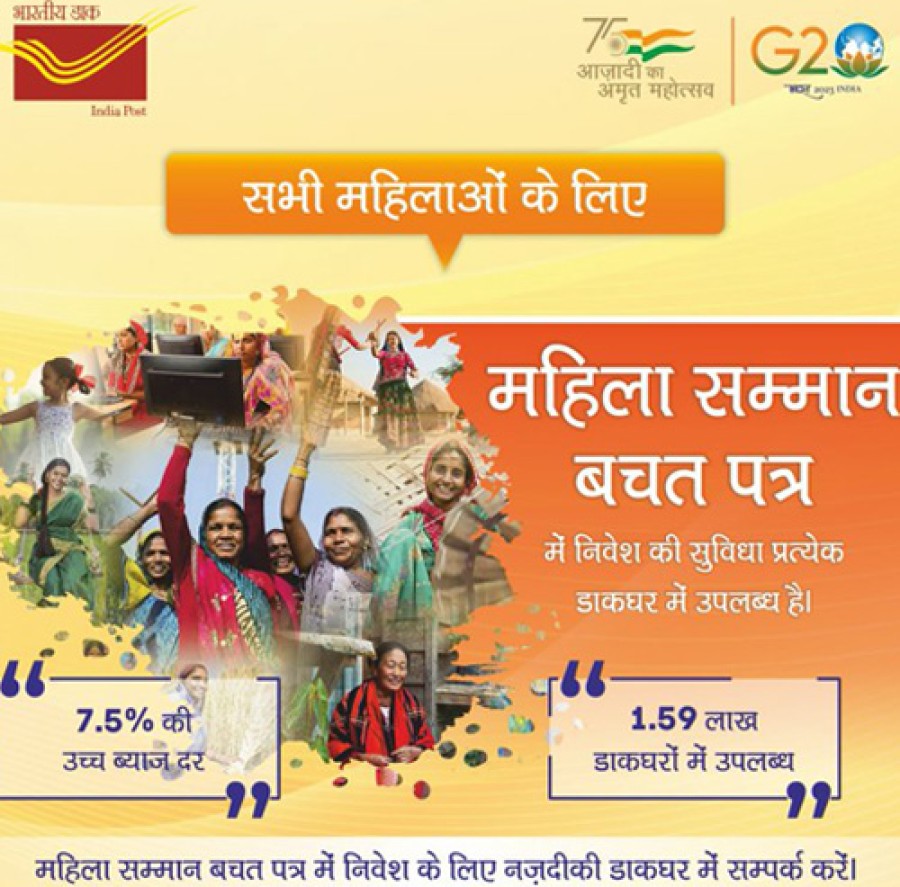 नई दिल्ली। केंद्रीय वित्त मंत्रालय ने महिला सम्मान बचत प्रमाणपत्र-2023 केलिए राजपत्र अधिसूचना जारी करते हुए इसे तत्काल प्रभाव से 1.59 लाख डाकघरों में उपलब्ध करा दिया है। गौरतलब हैकि केंद्रीय वित्तमंत्री निर्मला सीतारमण ने आजादी के अमृत महोत्सव के उपलक्ष्य में महिला सम्मान बचत पत्र योजना की घोषणा 2023-24 के बजट में की थी और इसे लड़कियों सहित महिलाओं के वित्तीय समावेशन और सशक्तिकरण की दिशा में एक महत्वपूर्ण कदम बताया था। दो साल की अवधि की यह योजना लचीले निवेश और आंशिक निकासी के विकल्पों केसाथ दो लाख रुपये की अधिकतम सीमा केसाथ त्रैमासिक चक्रवृद्धि ब्याज 7.5 प्रतिशत का आकर्षक और निश्चित ब्याज प्रदान करती है।