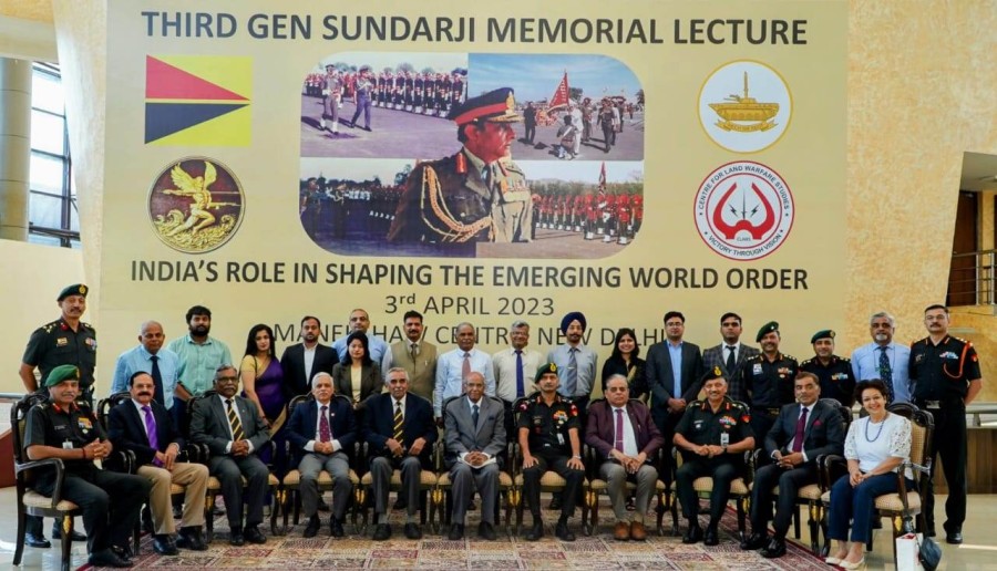 नई दिल्ली। भारतीय थलसेना के 13वें सेनाध्यक्ष और संचालन कुशल एवं दूरदर्शी जनरल के सुंदरजी पर स्मृति व्याख्यान के तीसरे संस्करण का आयोजन मानेकशॉ सेंटर में किया गया। जनरल के सुंदरजी भारत के अग्रणी सैन्य विचारकों में से एक थे। उनकी स्मृति में मैकेनाइज्ड इन्फैंट्री सेंटर एंड स्कूल और सेंटर फॉर लैंड वारफेयर स्टडीज के संरक्षण में यह व्याख्यान हुआ, जिसमें तीनों सेनाओं के सेवारत और सेवानिवृत्त अधिकारियों केसाथ कई साहित्यकारों एवं विभिन्न चिंतकों ने भी भाग लिया। जनरल के सुंदरजी को सप्रेम 'मैकेनाइज्ड इन्फैंट्री रेजिमेंट का जनक' के तौरपर भी पुकारा जाता है। भारतीय थलसेना के उपाध्यक्ष लेफ्टिनेंट जनरल सुचिंद्र कुमार ने इस अवसर पर कहाकि भारत ने विशेष रूपसे महामारी के दौरान विभिन्न अवसरों पर जिम्मेदारी युक्त भूमिका निभाते हुए एक उभरते वैश्विक नेता की तरह अपनी वैश्विक छवि को बरकरार रखा है।