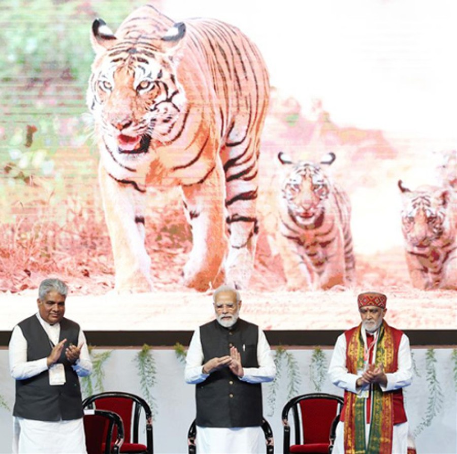 प्रधानमंत्री नरेंद्र मोदी ने इस तथ्य को दोहरायाकि प्रोजेक्ट टाइगर की सफलता के कई आयाम हैं, इसने पर्यटकों की गतिविधियों व जागरूकता कार्यक्रमों में वृद्धि की है और टाइगर रिज़र्व के भीतर मानव-पशु संघर्ष में कमी लाई है। उन्होंने कहाकि बिग कैट की मौजूदगी ने हर जगह स्थानीय लोगों के जीवन और वहां की इकोलॉजी पर सकारात्मक असर डाला है। दशकों पहले भारत में चीता के विलुप्त हो जाने पर प्रधानमंत्री ने नामीबिया और दक्षिण अफ्रीका से भारत लाएगए चीतों का उल्लेख करते हुए बिग कैट के पहले सफल ट्रांस-कॉन्टिनेंटल ट्रांसलोकेशन की चर्चा की। उन्होंने याद दिलायाकि कुनो राष्ट्रीय उद्यान में कुछदिन पहले चार सुंदर चीता शावकों का जन्म हुआ है। उन्होंने कहाकि करीब 75 साल पहले विलुप्त होने केबाद चीते ने भारत की धरती पर जन्म लिया है। उन्होंने जैव विविधता के संरक्षण और समृद्धि केलिए अंतर्राष्ट्रीय सहयोग के महत्व पर बल दिया। प्रधानमंत्री ने एक अंतर्राष्ट्रीय गठबंधन की जरूरत पर बल देते हुए कहाकि वन्यजीव संरक्षण किसी एक देश का मुद्दा नहीं है, बल्कि एक सार्वभौमिक मुद्दा है।