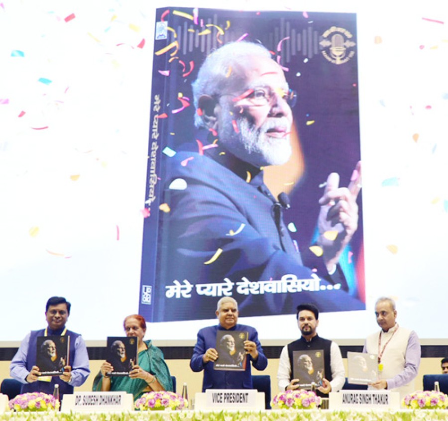उपराष्ट्रपति ने जोर देकर कहाकि व्यक्ति को हमेशा राष्ट्र को पहले रखना चाहिए। उन्होंने कहाकि भारत की विकास गाथा नारी शक्ति से भी रेखांकित होती है, जिसका उदाहरण एक आदिवासी महिला को भारत के राष्ट्रपति के रूपमें चुना जाना है। उन्होंने विभिन्न कल्याणकारी पहलों जैसे प्रत्यक्ष लाभ हस्तांतरण, पीएम उज्ज्वला योजना, पीएम किसान सम्मान निधि और अन्य को देश में सामाजिक एवं आर्थिक स्थिति में प्रतिमान परिवर्तन के संकेत के रूपमें भी नोट किया। सम्मेलन के दौरान उन्होंने कॉफी टेबल बुक 'माई डियर फेलो सिटिजन्स...' का विमोचन किया। सूचना और प्रसारण मंत्रालय की प्रकाशित पुस्तक रेडियो कार्यक्रम में प्रधानमंत्री की उल्लिखित 100 से अधिक प्रेरक कहानियों की झलक प्रस्तुत करती है। उन्होंने प्रसार भारती के पूर्व सीईओ शशि शेखर वेम्पति की पुस्तक कलेक्टिव स्पिरिट कंक्रीट एक्शन का भी विमोचन किया, जो राष्ट्र पर मन की बात कार्यक्रम के प्रभाव का वर्णन करती है।