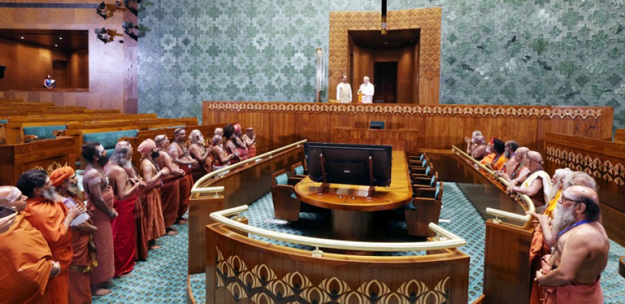 प्रधानमंत्री नरेंद्र मोदी ने कहाकि नया संसद भवन अपनी सफलता में देश के विश्वास को मजबूत करेगा और सभीको एक विकसित भारत की ओर प्रेरित करेगा। उन्होंने कहाकि हमें राष्ट्र प्रथम की भावना केसाथ आगे बढ़ना होगा, हमें कर्तव्य पथ को सर्वोपरि रखना होगा, हमें अपने आचरण में निरंतर सुधार करते हुए एक उदाहरण बनना होगा। प्रधानमंत्री ने कहाकि नई संसद दुनिया के सबसे बड़े लोकतंत्र को नई ऊर्जा और ताकत देगी। उन्होंने कहाकि हमारे श्रमजीवीयों ने संसद को इतना भव्य बना दिया है, लेकिन अपने समर्पण से इसे दिव्य बनाने की जिम्मेदारी सांसदों की है। संसद के महत्व पर जोर देते हुए प्रधानमंत्री ने कहाकि यह 140 करोड़ भारतीयों का संकल्प है, जो संसद को पवित्र करता है। उन्होंने उम्मीद जताईकि यहां लिया गया हर फैसला आने वाली सदियों की शोभा बढ़ाएगा और आनेवाली पीढ़ियों को मजबूती देगा। प्रधानमंत्री ने रेखांकित कियाकि गरीबों, दलितों, पिछड़ों, आदिवासी, विकलांगों और समाज के हर वंचित परिवार के सशक्तिकरण का रास्ता वंचितों के विकास को प्राथमिकता देने केसाथ इस संसद से होकर गुजरेगा। उन्होंने कहाकि हर ईंट, हर दीवार इस नए संसद भवन का कण-कण गरीबों के कल्याण केलिए समर्पित होगा, नए संसद भवन में बनने वाले नए कानून भारत को एक विकसित राष्ट्र बनाएंगे, गरीबी को भारत से बाहर निकालने में मदद करेंगे और देश के युवाओं और महिलाओं केलिए नए अवसर पैदा करेंगे। इस अवसर पर लोकसभा अध्यक्ष ओम बिरला और राज्यसभा के उपाध्यक्ष हरिवंश नारायण सिंह, सांसद, वरिष्ठ जनप्रतिनिधि और अतिथिगण उपस्थित थे।