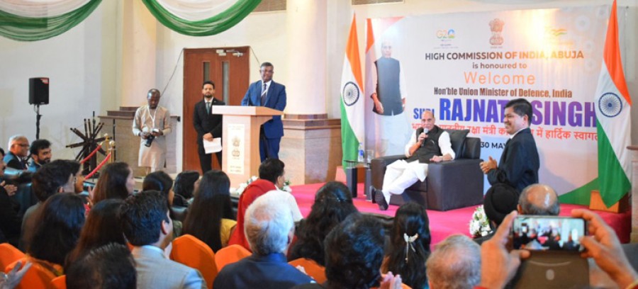 रक्षामंत्री ने नाइजीरिया में भारतीय समुदाय के सकारात्मक योगदान की सराहना की और विश्वास व्यक्त कियाकि वे भारतीय ध्वज को इसी प्रकार शिखर पर लहराते रहेंगे। राजनाथ सिंह ने आत्मनिर्भरता पर विशेष ध्यान और मेक इन इंडिया मेक फॉर द वर्ल्ड के उद्देश्य को प्राप्त करने की दिशा में हाल के वर्ष में रक्षा निर्यात में हुई महत्वपूर्ण प्रगति पर बल दिया। उन्होंने प्रतिकूल परिस्थितियों में किसीभी खतरे या चुनौती का प्रभावी ढंग से मुकाबला करने केलिए भारतीय सशस्त्र बलों की क्षमताओं की प्रशंसा की। रक्षामंत्री ने भारतीय उच्चायुक्त के उनके सम्मान में आयोजित रात्रिभोज में मुख्य न्यायाधीश और कार्यवाहक रक्षामंत्री सहित नाइजीरिया के गणमान्य व्यक्तियों केसाथ बातचीत की। गौरतलब हैकि नाइजीरिया में 50000 से अधिक भारतीय रहते हैं और नाइजीरिया में सर्वाधिक रोज़गार देनेवाली कंपनियों में भारतीय स्वामित्व एवं संचालित कंपनियां शामिल हैं।