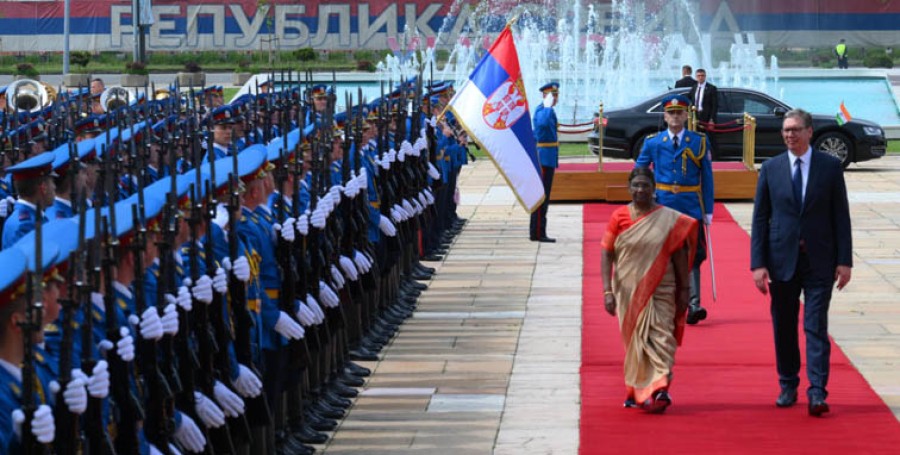 बेलग्रेड/ नई दिल्ली। राष्ट्रपति द्रौपदी मुर्मू दो देशों की अपनी आधिकारिक यात्रा के अंतिम चरण में सर्बिया पहुंचीं। गौरतलब हैकि सर्बिया जाने वाली पहली भारतीय राष्ट्रपति हैं द्रौपदी मुर्मू यानी यह भारत के किसीभी राष्ट्रपति की सर्बिया की पहली यात्रा है। सर्बिया के राष्ट्रपति एलेक्जेंडर वुकिक ने विशेष सम्मान प्रदर्शित करते हुए सर्बिया की राजधानी बेलग्रेड के निकोला टेस्ला हवाईअड्डे पर राष्ट्रपति द्रौपदी मुर्मू की गर्मजोशी से अगवानी की और उन्हें गार्ड ऑफ ऑनर दिया गया। हवाईअड्डे से राष्ट्रपति ने गांधीजीवा स्ट्रीट की यात्रा की और महात्मा गांधी की आवक्ष प्रतिमा पर पुष्पांजलि अर्पित की। राष्ट्रपति सर्बिया में भारत के राजदूत संजीव कोहली के बेलग्रेड में आयोजित सामुदायिक स्वागत समारोह में प्रवासी भारतीय समुदाय और भारत के शुभचिंतकों से भी मिलीं।