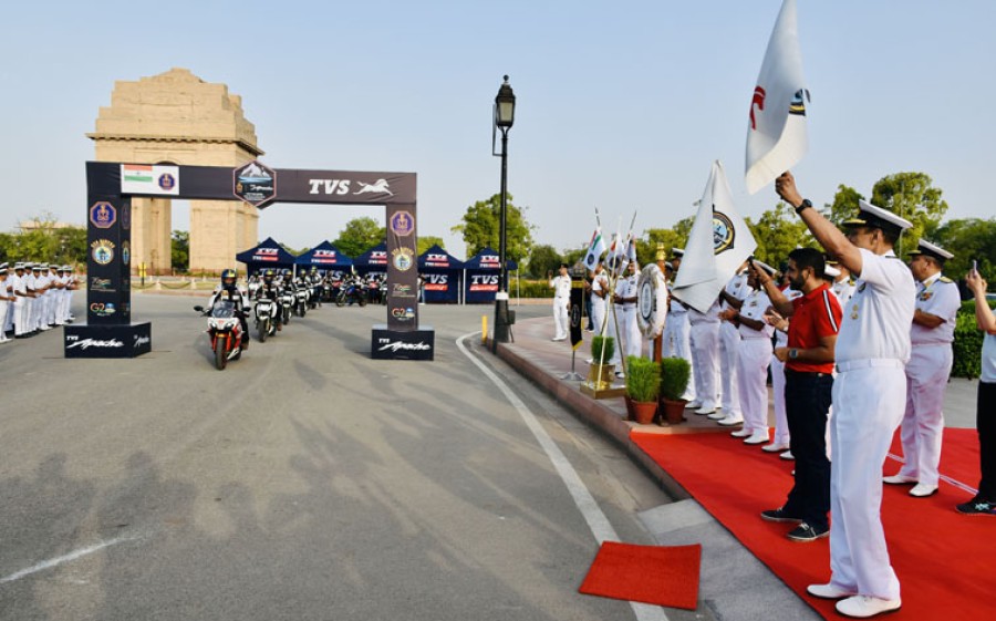 नौसेना के हैलो लद्दाख अभियान के पहले चरण को आज 15 जून को नई दिल्ली से हरी झंडी दिखाई गई और यह दिल्ली, हरियाणा, पंजाब और जम्मू-कश्मीर से होते हुए 28 जून को लेह पहुंचेगा। टीवीएस मोटर कंपनी के हेड बिजनेस प्रीमियम विमल सुंबली ने इस अवसर पर कहाकि हम भारतीय नौसेना केसाथ आजादी के अमृत महोत्सव समारोह के हिस्से के रूपमें जुड़कर बेहद गर्व महसूस कर रहे हैं। उन्होंने कहाकि टीवीएस मोटर ने हमेशा नवाचार और रोमांच की सीमाओं को बढ़ाने का प्रयास किया है और प्रतिष्ठित भारतीय नौसेना केसाथ यह सहयोग हमारी दृष्टि केसाथ पूरी तरह से मेल खाता है। विमल सुंबली ने कहाकि यह सहयोग उत्कृष्टता केलिए हमारी प्रतिबद्धता का प्रतीक है, क्योंकि हम इस रोमांचक यात्रा को शुरू करने केलिए नौसेना केसाथ भागीदारी करते हैं, जो विविध और चुनौतीपूर्ण इलाकों में टीवीएस अपाचे मोटरसाइकिलों की शक्ति का प्रदर्शन करती है।