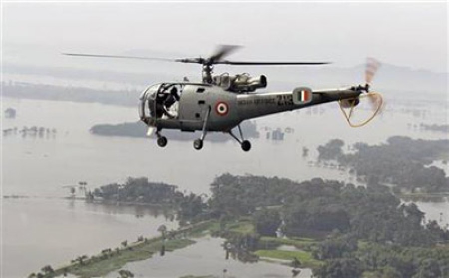 वायु सेना के हेलीकॉप्‍टर बाढ़ क्षेत्रों में उतरे