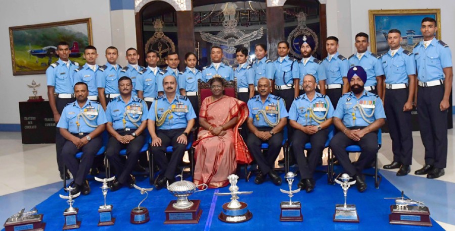 राष्ट्रपति द्रौपदी मुर्मू ने उल्लेख कियाकि इससे पहले काबुल में फंसे भारतीयों और अन्य नागरिकों को एयरलिफ्ट करने का सफल निकासी अभियान, जिसमें शत्रुतापूर्ण वातावरण में उड़ान भरना और उतरना शामिल था, भारतीय वायुसेना की उच्च क्षमताओं का प्रमाण है। राष्ट्रपति ने कहाकि जमीन, समुद्र और हवा में रक्षा तैयारियों केलिए तीव्रगति से प्रौद्योगिकी को अपनाने की क्षमता आवश्यक होगी। उन्होंने कहाकि सशस्त्र बलों के प्रत्येक अधिकारी को रक्षा तैयारियों के एकीकृत परिप्रेक्ष्य को ध्यान में रखना होगा। द्रौपदी मुर्मू ने कहाकि उन्हें यह जानकर खुशी हुई हैकि वायुसेना समग्र सुरक्षा परिदृश्य को ध्यान में रखते हुए विशेष रूपसे भविष्य केलिए तैयार रहने केलिए कदम उठा रही है, जिसमें नेटवर्क केंद्रित भविष्य के युद्ध क्षेत्र में एक उच्च प्रौद्योगिकी युद्ध लड़ने की चुनौतियां भी शामिल हैं। राष्ट्रपति ने इस अवसर पर अधिकारी प्रशिक्षुओं को ट्रॉफी और पदक देकर सम्मानित भी किया।