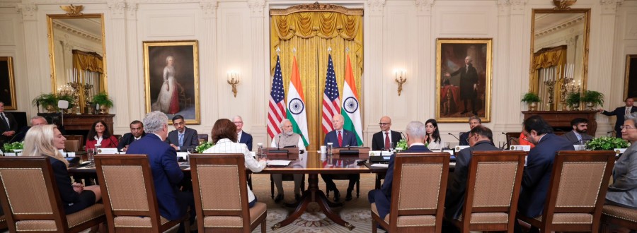 प्रधानमंत्री नरेंद्र मोदी और राष्ट्रपति जोसेफ आर बाइडेन ने कहाकि भारत-अमेरिका साझेदारी हमारे लोगों और दुनिया केलिए बेहतर भविष्य के निर्माण में महत्वपूर्ण भूमिका निभाएगी। कार्यक्रम में व्यापारिक क्षेत्र के दिग्गजों ने भाग लिया, इनमें-अमेरिका से रेवती अद्वैती सीईओ फ्लेक्स, सैम ऑल्टमैन सीईओ ओपनएआई, मार्क डगलस अध्यक्ष और सीईओ एफएमसी कॉर्पोरेशन, लिसा सु सीईओ एएमडी, विल मार्शल सीईओ प्लैनेट लैब्स, सत्या नडेला सीईओ माइक्रोसॉफ्ट, सुंदर पिचाई सीईओ गूगल, हेमंत तनेजा सीईओ और प्रबंध निदेशक जनरल कैटलिस्ट, थॉमस टुल्ल संस्थापक टुल्को एलएलसी, सुनीता विलियम्स नासा अंतरिक्ष यात्री और भारत से आनंद महिंद्रा अध्यक्ष महिंद्रा समूह, मुकेश अंबानी अध्यक्ष एवं प्रबंध निदेशक रिलायंस इंडस्ट्रीज, निखिल कामथ सह संस्थापक जेरोधा और ट्रू बीकन, वृंदा कपूर सह संस्थापक थर्ड-आई-टेक प्रमुख रूपसे शामिल हुए।