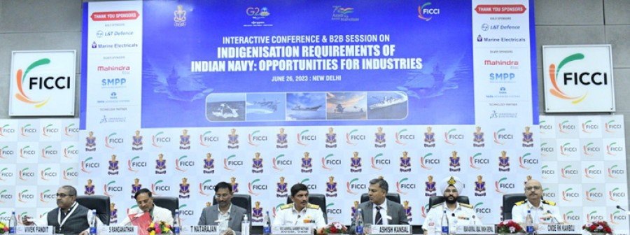 नई दिल्ली। भारतीय नौसेना का फेडरेशन ऑफ इंडियन चैंबर्स ऑफ कॉमर्स एंड इंडस्ट्री के सहयोग से 'भारतीय नौसेना की स्वदेशीकरण आवश्यकताओं: उद्योगों केलिए अवसर' विषय पर एक इंटरैक्टिव सम्मेलन और बी2बी सत्र फिक्की फेडरेशन हाउस नई दिल्ली के हरिशंकर सिंघानिया आयोग सभागार में शुरू हुआ। भारतीय नौसेना के मटेरियल प्रमुख वाइस एडमिरल संदीप नैथानी सम्मेलन में मुख्य अतिथि थे। उन्होंने मुख्य भाषण देते हुए कहाकि भारतीय नौसेना ने 1960 के दशक से शुरू होकर स्वदेशीकरण की एक लंबी यात्रा की है और यह वास्तव में प्रभावशाली हैकि फिक्की ने कितनी लगन से उपकरणों और प्रौद्योगिकी के विकास में पारस्परिक हित के क्षेत्रों की पहचान की है। इस सम्मेलन में 100 से अधिक उद्योग, एमएसएमई और स्टार्टअप्स शामिल हुए।