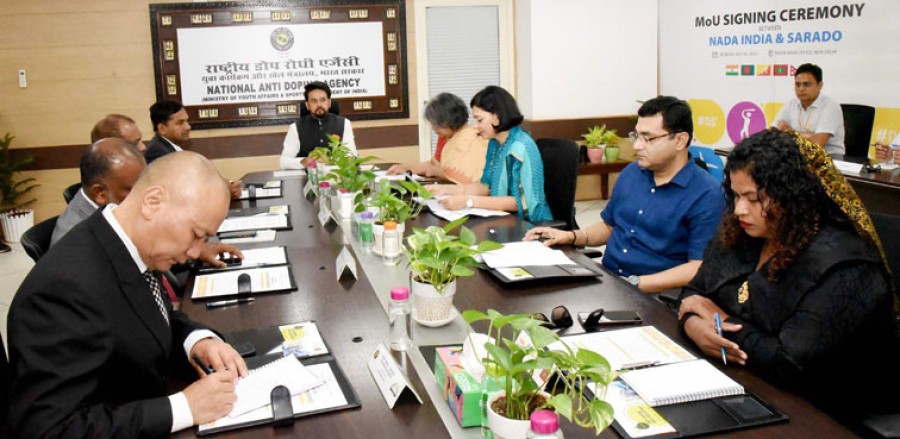 नई दिल्ली। भारत की राजधानी नई दिल्ली में नाडा इंडिया और साराडो सहयोग बैठक में नाडा इंडिया ने साराडो केसाथ एक एमओयू पर हस्ताक्षर किए हैं, जिसका उद्देश्य खेलों में डोप रोधी कार्यों में क्षेत्रीय सहयोग बढ़ाना है। साराडो में बांग्लादेश, भूटान, मालदीव, नेपाल और श्रीलंका के डोप रोधी संगठन शामिल हैं। इस अवसर पर युवा कार्यक्रम और खेल तथा सूचना एवं प्रसारण मंत्री अनुराग ठाकुर, सचिव खेल युवा कार्यक्रम एवं खेल मंत्रालय सुजाता चतुर्वेदी, साराडो सचिवालय एवं बांग्लादेश, भूटान, मालदीव, नेपाल और श्रीलंका सदस्य देशों के प्रतिनिधि उपस्थित थे। अनुराग ठाकुर ने अंतर्राष्ट्रीय खेलों में भारत की बढ़ती भागीदारी और उपलब्धियों तथा स्वच्छ खेल प्रतिस्पर्धा प्रयासों को बढ़ावा देने की जिम्मेदारी उठाने और वैश्विक डोप रोधी अभियान में बढ़चढ़कर योगदान को लेकर भारत की उत्सुकता का उल्लेख किया।