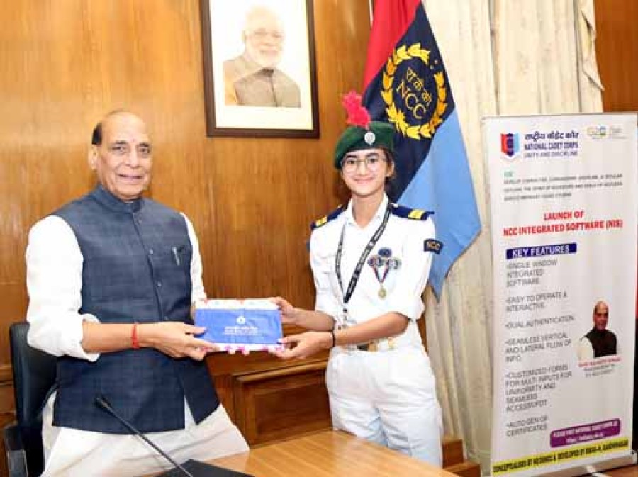 नई दिल्ली। रक्षामंत्री राजनाथ सिंह ने डिजिटलीकरण को बढ़ावा देने और डिजिटल इंडिया मिशन के अनुरूप एनसीसी इंटीग्रेटेड सॉफ्टवेयर लॉंच किया है। भास्कराचार्य इंस्टीट्यूट फॉर स्पेस एप्लिकेशन और जियो इंफॉर्मेटिक्स केसाथ साझेदारी में विकसित एनसीसी इंटीग्रेटेड सॉफ्टवेयर 'एंट्री टू एग्जिट मॉडल' पर डिजाइन किया गया यह एक सिंगल विंडो इंटरैक्टिव सॉफ्टवेयर है। एनसीसी इंटीग्रेटेड सॉफ्टवेयर प्रधानमंत्री नरेंद्र मोदी के 'एक बार बन गया कैडेट हमेशा कैडेट ही होता है' के विजन पर आधारित है और यह एनसीसी में कैडेट के रूपमें नामांकन के चरण से पूर्व छात्र के रूपमें एक्जिट पंजीकरण तक की पूरी प्रक्रिया को डिजिटल बना देगा। इससे प्रमाणपत्रों को निर्बाध रूपसे जारी करने, रोज़गार के समय एनसीसी कैडेटों का एक अखिल भारतीय डेटाबेस तैयार करने में मदद मिलेगी।