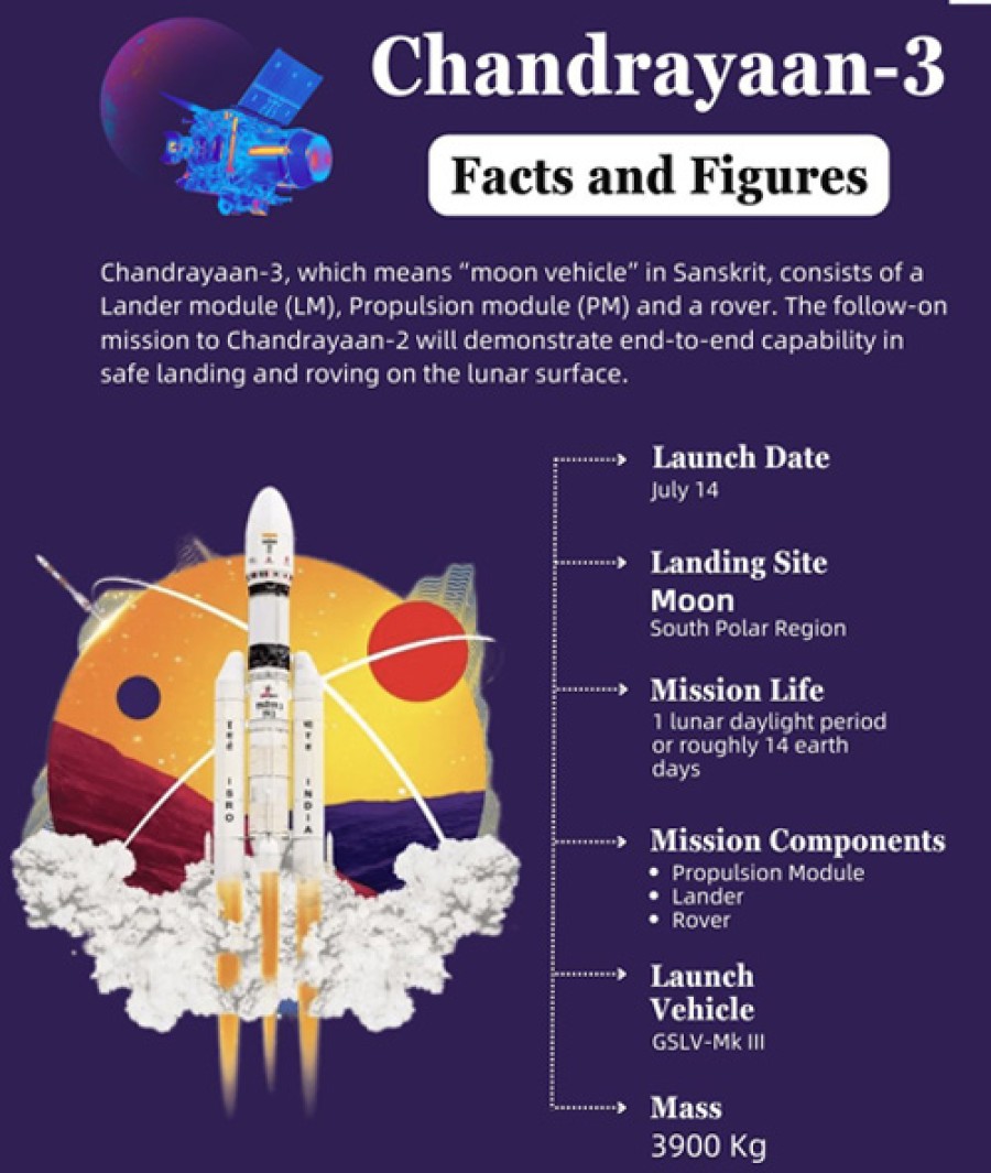 अंतरिक्ष राज्यमंत्री डॉ जितेंद्र सिंह ने कहाकि चंद्रयान-3, चंद्रयान-2 का अनुवर्ती मिशन है, इसका उद्देश्य चांद अथवा चांद की सतह पर सॉफ्ट लैंडिंग और रोविंग में भारत की क्षमता का प्रदर्शन करना है। डॉ जितेंद्र सिंह ने कहाकि अंतरिक्षयान को चंद्रमा की कक्षा में प्रवेश करने केलिए आवश्यक जटिल मिशन प्रोफ़ाइल को बहुत सटीक तरीके से क्रियांवित किया गया है। उन्होंने बतायाकि चंद्रमा की सतह पर चंद्रयान-3 की सफल लैंडिंग केबाद छह पहियों वाला रोवर बाहर आएगा और चंद्रमा पर 14 दिन तक कार्य कर सकेगा। उन्होंने कहाकि रोवर पर कई कैमरों के सहयोग से हम तस्वीरें प्राप्त कर सकेंगे। अंतरिक्ष कर्मियों केलिए एक सक्षम वातावरण प्रदान करने और सार्वजनिक निजी भागीदारी केलिए अंतरिक्ष क्षेत्र को खोलने जैसे अग्रणी निर्णय लेने केलिए प्रधानमंत्री को श्रेय देते हुए डॉ जितेंद्र सिंह ने कहाकि विकास की वर्तमान गति के आधार पर आनेवाले वर्षों में हमारा अंतरिक्ष क्षेत्र एक ट्रिलियन अमेरिकी डॉलर की अर्थव्यवस्था बन सकता है।
