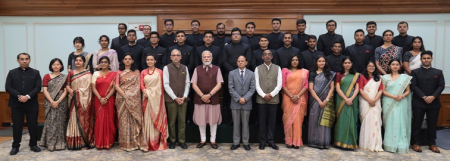 नई दिल्ली। भारतीय विदेश सेवा में 2022 बैच के प्रशिक्षु अधिकारियों ने प्रधानमंत्री नरेंद्र मोदी से राजधानी नई दिल्ली में उनके आवास 7 लोककल्याण मार्ग पर मुलाकात की। प्रधानमंत्री ने प्रशिक्षु अधिकारियों केसाथ विस्तृत बातचीत की और उनसे सरकारी सेवा में शामिल होने के बादसे अबतक के उनके अनुभव के बारेमें जानकारी प्राप्त की। प्रशिक्षु अधिकारियों ने अपने प्रशिक्षण के दौरान गांवों के दौरे, भारत दर्शन और सशस्त्र बलों के जुड़ाव सहित अन्य सीखी गई बातों को भी प्रधानमंत्री से साझा किया। प्रशिक्षु अधिकारियों ने प्रधानमंत्री को जल जीवन मिशन और पीएम आवास योजना जैसी सरकार की कई कल्याणकारी योजनाओं के परिवर्तनकारी प्रभाव के बारेमें भी बताया, जिसके असर को उन्होंने प्रशिक्षण भ्रमण के दौरान प्रत्यक्ष रूपसे देखा है।