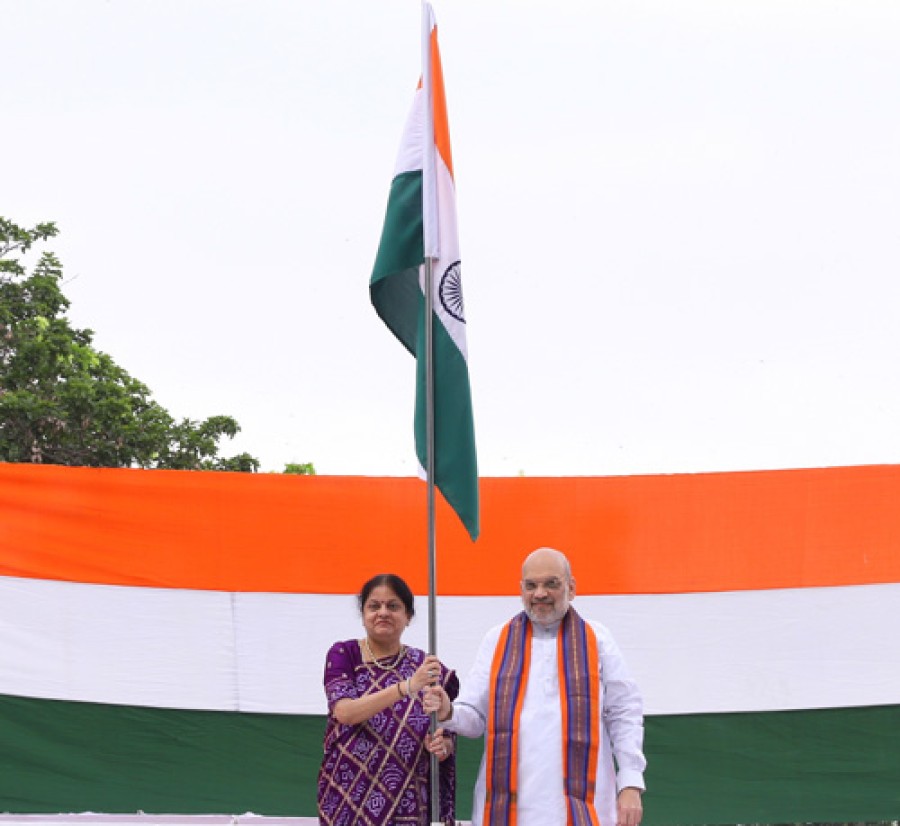 नई दिल्ली। केंद्रीय गृह एवं सहकारिता मंत्री अमित शाह ने हर घर तिरंगा अभियान केतहत आज नई दिल्ली आवास पर तिरंगा फहराया और तिरंगे केसाथ अपनी सेल्फी भी साझा की। अपने ट्वीट्स में अमित शाह ने कहाकि स्वतंत्रता दिवस से पहले आकाश में फहराते करोड़ों तिरंगे भारत को फिरसे महान बनाने की देश की संयुक्त इच्छाशक्ति का प्रतीक हैं।