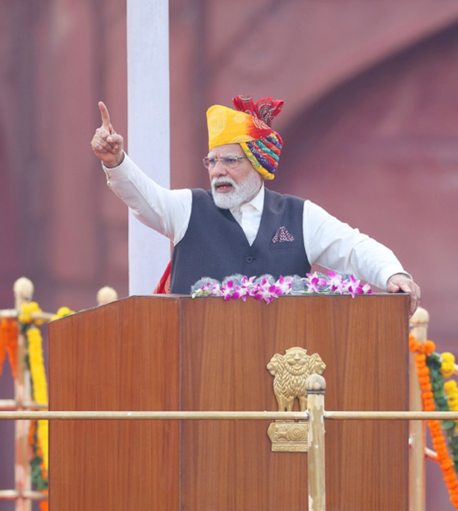 प्रधानमंत्री नरेंद्र मोदी ने कहाकि हमने मातृभाषा में पढ़ाने पर बदल दिया है और मातृभाषा की दिशा में काम करने पर प्रधानमंत्री ने भारत के सुप्रीम कोर्ट का भी धन्यवाद किया, जिसने कहा हैकि वह अब जो फैसले देंगे, वे वादी प्रतिवादी को उसकी भाषा में उपलब्ध कराएं जाएंगे। उन्होंने कहाकि सरकार ने जीवंत सीमा गांव का एक कार्यक्रम शुरू किया है, अब तक इसके लिए कहा जाता था कि देश के आखिरी गांव, मगर हमने उस पूरी सोच को बदला है, वो देश का आखिरी गांव नहीं है, सीमा पर जो नज़र आ रहा है, वो मेरे देश का पहला गांव है। उन्होंने कहाकि हमने संतुलित विकास के लिए आकांक्षी जिला, आकांक्षी ब्लॉक की कल्पना की और आज उसके सुखद परिणाम मिल रहे हैं। आज राज्य के जो जिले कभी बहुत पीछे थे, वो आज अच्छा करने लग गए हैं। उन्होंने कहाकि हम विश्व मंगल की बात को आगे बढ़ाते हैं, आज दुनिया उसको स्वीकार कर रही है। उन्होंने कहाकि हमने क्लाईमेट को लेकर दुनिया को रास्ता दिखाया है, लाइफ मिशन लॉंच किया है। उन्होंने कहाकि हमारे सबके सपने अनेक हैं, संकल्प साफ है और नीतियां स्पष्ट हैं, नीयत के सामने कोई सवालिया निशान नहीं है, लेकिन कुछ सच्चाईयों को हमें स्वीकार करना पड़ेगा और उसके समाधान केलिए मैं लालकिले से आपकी मदद मांगने आया हूं, मैं लालकिले से आपका आर्शीवाद मांगने आया हूं। उन्होंने कहाकि आजादी के अमृतकाल में 2047 में जब देश आजादी के 100 साल मनाएगा, उस समय दुनिया में भारत का तिरंगा झंडा विकसित भारत का तिरंगा झंडा होना चाहिए, रत्तीभर भी हमें रुकना नहीं है, पीछे हटना नहीं है।
