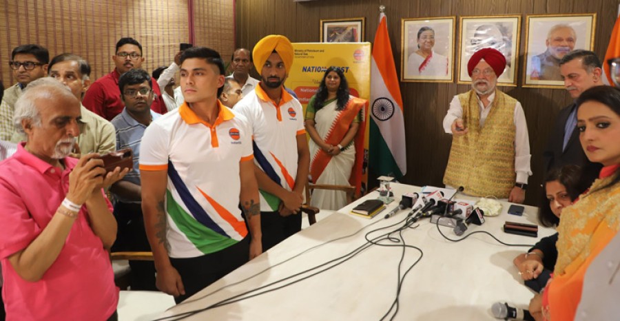नई दिल्ली। भारत के 77वें स्वतंत्रता दिवस पर नरेंद्र मोदी सरकार में आवासन और शहरी कार्य तथा पेट्रोलियम एवं प्राकृतिक गैस मंत्री हरदीप सिंह पुरी ने विभिन्न खेल विधाओं में भारत को गौरवांवित करने वाले खिलाड़ियों को शामिल करने वाली भारत के राष्ट्रगान की एक प्रस्तुति का शुभारंभ किया। गौरतलब हैकि गौरवांवित और प्रतिभाशाली इंडियन ऑयल कॉर्पोरेशन लिमिटेड खेल बिरादरी स्वतंत्रता दिवस 2023 का जश्न मनाने केलिए एकसाथ आई और इस पहल का समर्थन किया है। इंडियन ऑयल सीएल खेल बिरादरी में कुल 167 खिलाड़ी हैं, जिनमें एथलेटिक्स, बिलियर्ड्स और स्नूकर, बैडमिंटन, कैरम, शतरंज, क्रिकेट, हॉकी, टेबल टेनिस और टेनिस से 102 खिलाड़ी वर्तमान में खेल रहे हैं।