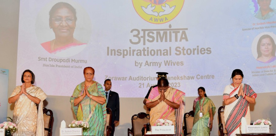 राष्ट्रपति द्रौपदी मुर्मु ने कहाकि अस्मिता शब्द के प्रचलित अर्थ हैं अस्तित्व का बोध होना तथा आत्मगौरव का भाव होना। राष्ट्रपति ने वीर नारियों से बातचीत करते हुए कहाकि आर्मी वाइव्स एसोसिएशन की स्थापना ही सैनिकों की धर्मपत्नियों की प्रतिभा के सकारात्मक उपयोग के उद्देश्य से की गई थी, लेकिन आपसब बहनों की अपनी अलग अस्मिता भी है। उन्होंने कहाकि अनेक समारोहों में उनकी मुलाक़ात ऐसी बहनों और बेटियों से होती रहती है, जो विभिन्न क्षेत्रों में सफलता के शिखर पर आसीन हैं, उनमें से अधिकांश बहनों और बेटियों ने सफलता की ऊंचाइयों तक पहुंचने केलिए गंभीर चुनौतियों का सामना किया है। राष्ट्रपति ने कहाकि मिसाइल से संगीत तक हमारी बहनों ने असाधारण सफलता के कीर्तिमान स्थापित किए हैं, सरल शब्दों में कहें तो 'नारी में अपार शक्ति है, नारी कुछभी कर सकती है'।