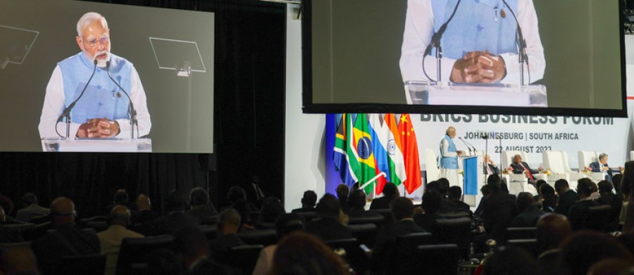 प्रधानमंत्री नरेंद्र मोदी ने कहाकि ब्रिक्स देश एकसाथ मिलकर वैश्विक कल्याण विशेषकर ग्लोबल साउथ में अपना महत्वपूर्ण योगदान दे सकते हैं। नरेंद्र मोदी ने कहाकि उन्हें ख़ुशी हैकि दक्षिण अफ्रीका में हमारे कार्यक्रम की शुरुआत ब्रिक्स बिज़नेस फोरम से हो रही है। उन्होंने दक्षिण अफ्रीका के राष्ट्रपति सिरिल रामफोसा को उन्हें आमंत्रित करने और इस बैठक के आयोजन केलिए धन्यवाद देते हुए ब्रिक्स बिज़नेस काउंसिल को दसवीं वर्षगांठ पर बधाई और शुभकामनाएं दीं। प्रधानमंत्री ने कहाकि बीते दस वर्ष में ब्रिक्स बिज़नेस काउंसिल ने हमारे आर्थिक सहयोग को बढ़ाने में बहुत महत्वपूर्ण भूमिका निभाई है, 2009 में जब ब्रिक्स की पहली समिट आयोजित की गई थी, तब विश्व एक बड़े आर्थिक संकट से बाहर आ रहा था, उस समय ब्रिक्स वैश्विक अर्थव्यवस्था केलिए एक आशा की किरण के रूपमें उभरा था। उन्होंने कहाकि वर्तमान समय मेंभी कोविड महामारी, तनावों और विवादों केबीच विश्व आर्थिक चुनौतियों से जूझ रहा है, ऐसे समय में ब्रिक्स देशों की एकबार फिर महत्वपूर्ण भूमिका है।