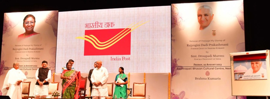 राष्ट्रपति द्रौपदी मुर्मु ने कहाकि दादी प्रकाशमणि के जीवन से यह आदर्श प्रस्तुत होता हैकि एक महान आत्मा ही प्रेम का संचार कर सकती है। उन्होंने कहाकि कुछ लोग ऐसे काम कर जाते हैंकि वे अमरत्व प्राप्त कर लेते हैं, मनुष्य को उसकी आत्मिक शक्ति का अनुभव करवाना और दुनिया में प्रेम एवं सद्भाव का विस्तार करना एक महान कार्य है, इस महान कार्य की ज्योति दादी प्रकाशमणि ने जलाई थी, ब्रह्माकुमारी परिवार के सदस्य इस ज्योति से अनेक ज्योतियां जलाकर दुनिया में अध्यात्म का प्रकाश फैला रहे हैं। उन्होंने ने कहाकि संचार मंत्रालय और डाक विभाग की माई स्टाम्प योजना की बहुत प्राथमिकता प्राप्त कर ली है, इसके कारण बहुत से लोग डाक टिकटें खरीदते हैं, इसके माध्यम से आज लोग अपनी पसंद के अनुसार विषयगत स्मारक टिकट केसाथ अपनी तस्वीर या कोई अन्य थंबनेल फोटोग्राफ लगाकर मेरा स्टाम्प खरीद रहे हैं।