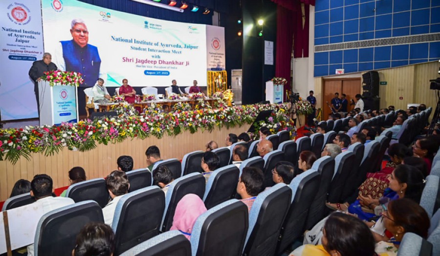उपराष्ट्रपति जगदीप धनखड़ ने खुशी व्यक्त कीकि आज का किसान तकनीक से युक्त है और बिना किसी बिचौलिए के पैसे सीधे अपने बैंक खाते में ले रहा है। उन्होंने डिजिटल ट्रांजेक्शन का जिक्र करते हुए कहाकि 46 प्रतिशत विश्व का लेनदेन भारत में होता है। देश में बढ़ते डिजिटल डाटा उपभोग की बात करते हुए उन्होंने कहाकि हर भारतीय के अंदर एकलव्य है, हमें कोई सिखाए ना सिखाएं हम स्वयं सीख जाते हैं। उपराष्ट्रपति ने कहाकि हममें से कुछ लोग 2047 में नहीं होंगे, लेकिन जब भारत अपनी आजादी के 100 साल पूरे करेगा, हमें पूरा विश्वास हैकि हम टॉप पर होंगे। इस अवसर पर डॉ सुदेश धनखड़, आयुष और महिला एवं बाल विकास मंत्रालय में राज्यमंत्री डॉ मुंजपारा महेंद्र भाई, आयुष मंत्रालय में सचिव वैद्य राजेश कुटेचा, वाइस चांसलर राष्ट्रीय आयुर्वेद संस्थान जयपुर संस्थान के प्रोफेसर संजीव शर्मा, अधिकारी, फैकल्टी मेंबर, संस्थान के विद्यार्थी और गणमान्य नागरिक उपस्थित थे।