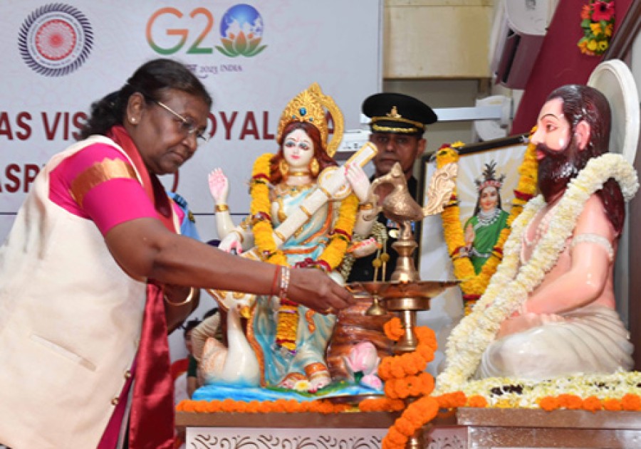 राष्ट्रपति द्रौपदी मुर्मु ने छात्र-छात्राओं को स्वामी विवेकानंद के प्रेरणादायक और ऊर्जावान शिकागो संबोधन के बारेमें बताते हुए कहाकि वर्ष 1893 के विश्व और तत्कालीन भारत के बारेमें सोचिए, स्वामीजी ने उस वर्ष शिकागो में भारतीय संस्कृति की श्रेष्ठता का जयघोष किया था और विश्व समुदाय का सम्मान अर्जित किया था, उस समय भारत में गुलामी की मानसिकता अपने चरम पर थी, साम्राज्यवाद तथा पश्चिमी देशों का सम्पूर्ण वर्चस्व था तथा एशिया के लोग हीनता की भावना से ग्रस्त थे, ऐसे वैश्विक वातावरण में स्वामी विवेकानंद ने विश्व समुदाय में भारत का गौरव बढ़ाया। राष्ट्रपति ने कहाकि आज की युवा पीढ़ी को जिस वैश्विक परिवेश में आगे बढ़ना है, उसमें भारत की स्थिति बहुत मजबूत है तथा विश्व समुदाय के अग्रणी राष्ट्रों में हमारी गणना होती है।