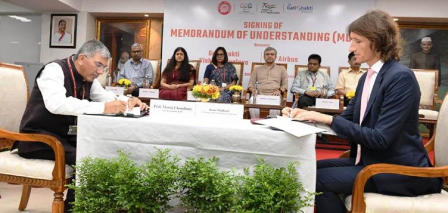 नई दिल्ली। भारतीय रेलवे की गति शक्ति यूनिवर्सिटी वडोदरा और एयरबस ने भारतीय विमानन क्षेत्र को और मजबूत करने केलिए एक समझौता किया है। इस संदर्भ में नई दिल्ली के रेल भवन में अध्यक्ष एवं प्रबंध निदेशक एयरबस इंडिया और दक्षिण एशिया रेमी मेलार्ड और कुलपति गति शक्ति विश्वविद्यालय प्रोफेसर मनोज चौधरी केबीच समझौता ज्ञापन पर हस्ताक्षर किए गए। इस अवसर पर रेल, संचार, इलेक्ट्रॉनिक्स एवं आईटी मंत्री अश्विनी वैष्णव भी उपस्थित थे, जो गति शक्ति विश्वविद्यालय के कुलपति भी हैं। गौरतलब हैकि हाल ही में वडोदरा में एयरबस और टाटा ने भी भारत में सी-295 विमान का डिजाइन, नवाचार, निर्माण और विकास केलिए एक साझेदारी की घोषणा की थी। एयरबस दुनिया में वाणिज्यिक विमानों का सबसे बड़ा निर्माता है और हेलीकॉप्टरों, रक्षा एवं अंतरिक्ष उपकरणों का एक प्रमुख निर्माता है।