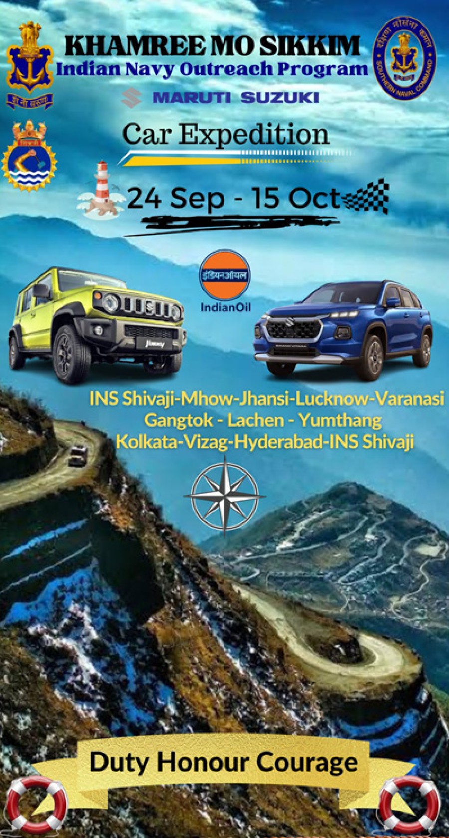 लोनावाला। भारतीय नौसेना ने देश के दूरदराज क्षेत्रों में विकास के राष्ट्रीय नेतृत्व के दृष्टिकोण को जारी रखते हुए पूर्वोत्तर राज्यों केसाथ संपर्क को मजबूत बनाने केलिए एक बहुआयामी आउटरीच कार्यक्रम शुरू किया है, 'खमरी मो सिक्किम' कार रैली, जो 24 सितंबर से 15 अक्टूबर 23 तक लोनावाला महाराष्ट्र में आईएनएस शिवाजी से सिक्किम तक आयोजित की जा रही है। यह रैली 6500 किलोमीटर की दूरी तय करते हुए कई राज्यों से होकर गुजरेगी।
