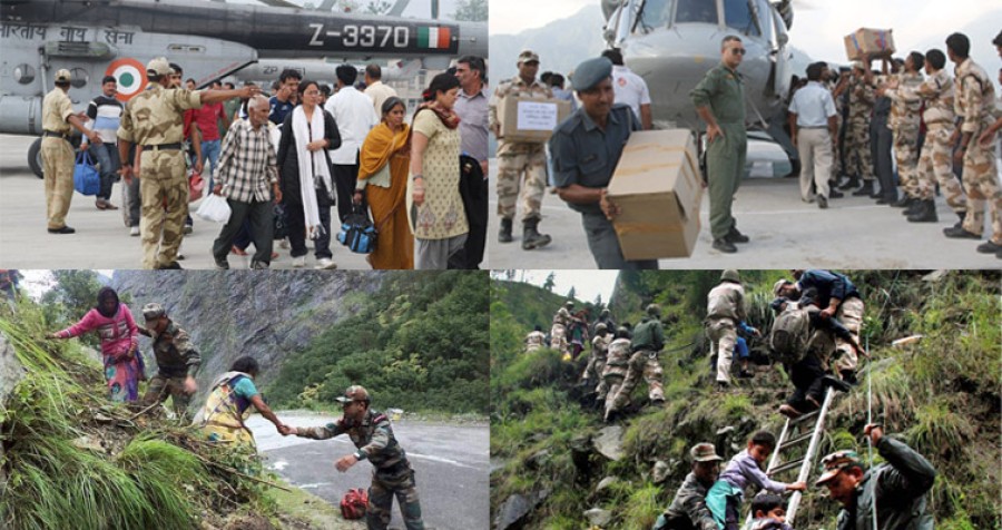 नई दिल्ली, देहरादून। उत्तराखंड में बड़ी जन हानि और वहां अभी तक फंसे लोगों के लिए राहत और बचाव कार्यों को तेज करते हुए सेना, वायु सेना और सभी प्रकार के सुरक्षा बलों ने अपनी पूरी ताकत झोंक दी है। बचाव कार्यों का जायजा लेने के लिए कैबिनेट सचिव ने राज्य सरकार के अधिकारियों तथा भारत सरकार, रक्षा सेवाओं, आटीबीपी सीमा सड़क संगठन और एनडीआरएफ के वरिष्ठ अधिकारियों के साथ एक समीक्षा बैठक भी की। फंसे यात्रियों को जल्द से जल्द वायु तथा स्थल मार्ग से बाहर निकालने के लिए राज्य सरकार, वायु सेना, एनडीआरएफ और सीमा सड़क संगठन के बीच समन्वित प्रयास जारी हैं। भारत सरकार, राज्य सरकार की आवश्यकतानुसार खाद्य वस्तुएं, दवाएं और ईंधन उपलब्ध करा रही है। रेलवे, दूर संचार और पैट्रोलियम जैसे विभागों ने भी अपने संसाधन उपलब्ध कराकर हैल्प लाइने शुरू की हैं।