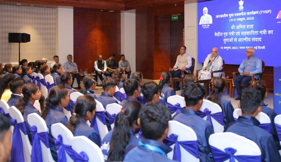 गृहमंत्री का दिल्ली भ्रमण पर आए आदिवासी युवाओं से संवाद