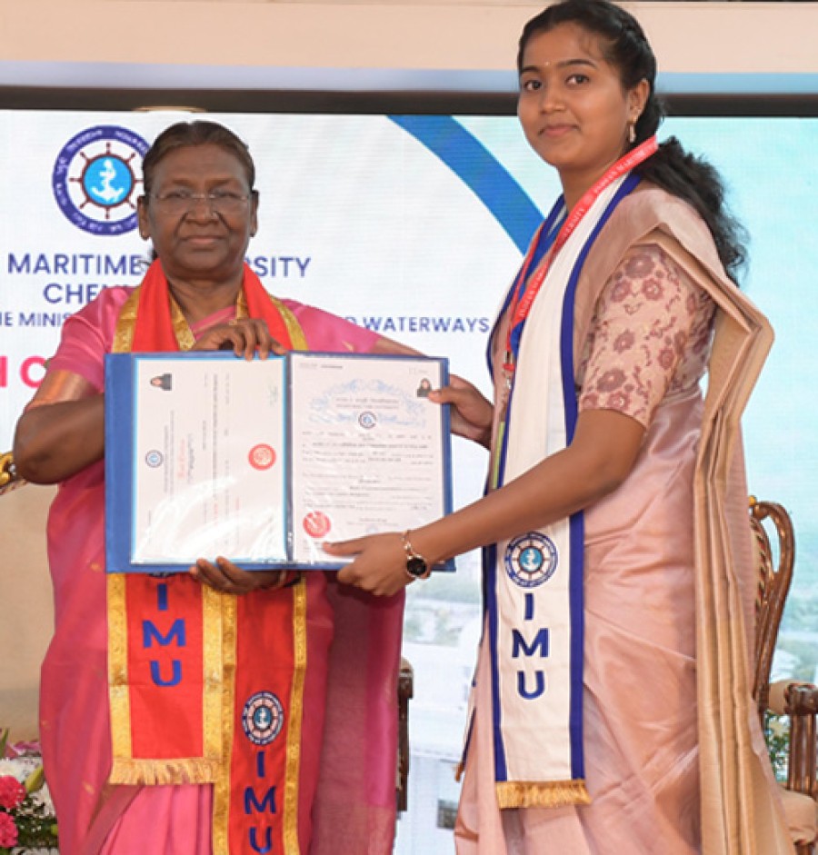 राष्ट्रपति द्रौपदी मुर्मु ने विद्यार्थियों से कहाकि उनको कई अन्य व्यवसायों में समान उम्र में अपेक्षा से अधिक उच्च ज़िम्मेदारी उठाने केलिए तैयार रहना चाहिए, आपके पास अक्सर चुनौतीपूर्ण परिस्थितियों में अपनी टीम के सदस्यों का मार्गदर्शन करने केलिए आवश्यक नेतृत्व गुण होने चाहिएं, एक मर्चेंट नेवी अधिकारी के रूपमें आपको पेशे की मांगों से निपटने केलिए विशेष गुण प्रदर्शित करने चाहिएं जैसेकि घर से कई महीने दूर रहना और क्रू सदस्यों केसाथ निकटता में रहना। राष्ट्रपति ने विद्यार्थियों से कहाकि उन्हें यकीन हैकि उनमें पहले से ही ये सभी गुण हैं और वे अपना कार्यभार संभालने में पूरी तरह सक्षम हैं। द्रौपदी मुर्मु ने कहाकि हमारे देश के सबसे बड़े समुद्री विश्वविद्यालय के रूपमें भारतीय समुद्री विश्वविद्यालय और इसके संबद्ध कॉलेजों ने उत्कृष्ट विशेषज्ञ, पेशेवर और नेता पैदा किए हैं। उन्होंने कहाकि उन्हें खुशी हैकि इस प्रतिष्ठित विश्वविद्यालय के पूर्व छात्र के रूपमें वे उद्यमशील और प्रतिभाशाली कर्मियों की एक लंबी कतार में शामिल हो गए हैं, जिनके काम, नेतृत्व और बुद्धि ने समुद्री गतिविधियों की उन्नति में उल्लेखनीय और गहरा योगदान दिया है। राष्ट्रपति ने कहाकि समुद्र केसाथ मानवीय संबंध तबसे अस्तित्व में है, जब हमारे पूर्वजों ने पहलीबार समुद्र के पानी पर नज़र रखी थी, यहां तककि एक असाधारण कल्पना भी मानव सभ्यता के विकास में महासागरों की निभाई गई भूमिका केसाथ शायद ही न्याय कर सकती है।