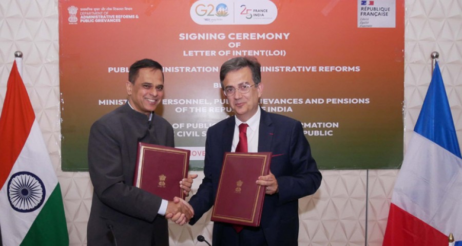 नई दिल्ली। भारत और फ्रांस ने लोक प्रशासन और प्रशासनिक सुधार संबंधित एक आशय पत्र पर हस्ताक्षर किए हैं, जिसके तहत अगले 3 वर्ष केलिए सुशासन के क्षेत्र में भारत-फ्रांस केबीच पहले से घनिष्ठ और मैत्रीपूर्ण संबंधों को और मजबूत एवं बढ़ावा दिया जाएगा। भारत सरकार के कार्मिक, लोक शिकायत और पेंशन मंत्रालय के अंतर्गत प्रशासनिक सुधार और लोक शिकायत विभाग तथा फ्रांसीसी गणराज्य के सार्वजनिक क्षेत्र परिवर्तन और सिविल सेवा मंत्रालय अगले तीन वर्ष केलिए प्रशासन एवं प्रशासनिक सुधार के क्षेत्र में सहयोग करेंगे। देश की राजधानी नई दिल्ली में एक औपचारिक समारोह में प्रशासनिक सुधार और लोक शिकायत विभाग की ओर से सचिव वी श्रीनिवास और भारत में फ्रांस के राजदूत थिएरी माथौ ने आशय पत्र पर हस्ताक्षर किए। हाइब्रिड मोड में आयोजित कार्यक्रम में विदेश मंत्रालय, फ्रांस में भारतीय दूतावास, भारत में फ्रांसीसी दूतावास और फ्रांसीसी गणराज्य के सार्वजनिक क्षेत्र परिवर्तन व सिविल सेवा मंत्रालय के वरिष्ठ अधिकारियों ने भी भाग लिया।