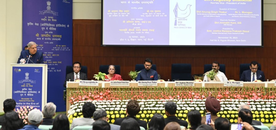उपराष्ट्रपति ने कहाकि आज सूचना की भरमार है और ऐसे में पत्रकार और मीडिया घराने ईमानदारी के उच्चतम मानकों को बनाए रखें, तथ्यों, विश्वसनीय स्रोतों तथा सत्यापन और संपादकीय स्वतंत्रता बनी रहनी चाहिए, यह पहले से भी कहीं अधिक महत्वपूर्ण हो गया है। राष्ट्रीय प्रेस दिवस पर उपराष्ट्रपति ने सच्चाई केलिए रिपोर्टिंग करने वाले पत्रकारों को याद करते हुए मीडिया से मीडिया से जुड़े लोगों को सम्बोधित करते हुए कहाकि हमें उन पत्रकारों को याद करना चाहिए, जिन्होंने सच्चाई केलिए अपना सर्वस्व न्यौछावर कर दिया। उन्होंने कहाकि हमें उनके साहस का सम्मान करना चाहिए और प्रेस की स्वतंत्रता, जो लोकतंत्र का एक आवश्यक अंग है पर किसीभी खतरे के खिलाफ एकजुट रहना चाहिए। इस समारोह में केंद्रीय सूचना एवं प्रसारण मंत्री अनुराग ठाकुर, राज्यमंत्री एल मुरूगन, प्रेस काउंसिल आफ इंडिया की अध्यक्ष जस्टिस रंजना प्रसाद देसाई, जी-20 के शेरपा अमिताभ कांत, प्रेस काउंसिल आफ इंडिया के सचिव और गणमान्य महानुभाव उपस्थित थे।