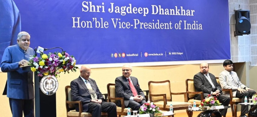 उपराष्ट्रपति ने चंद्रयान-3 की सफल लैंडिंग का जिक्र करते हुए कहाकि जो कोई देश नहीं कर पाया भारत ने वह संभव करके दिखाया। उन्होंने कहाकि भारत की संस्कृति और लोकाचार 5000 वर्ष से भी अधिक पुराने हैं, दुनिया ने जी-20 के दौरान भारत की संस्कृति को बारीकी से देखा, सभ्यतागत लोकाचार और संस्कृति का लोहा माना, भारत जैसी समृद्ध सांस्कृतिक विरासत दुनिया में किसीभी देश के पास नहीं है। जगदीप धनखड़ ने कहाकि प्रधानमंत्री नरेंद्र मोदी की दूरदर्शिता के कारण देश में हरघर में टॉयलेट, गैस सिलेंडर और नल से जल पहुंचना, सभीको बैंकिंग सेक्टर से जोड़ा जाना एक महान उपलब्धि है। उन्होंने कहाकि दुनिया का सबसे बड़ा कन्वेंशन सेंटर भारत मंडपम हमारे देश में उपलब्ध है, यशोभूमि एक अत्यंत भव्य कन्वेंशन सेंटर भी बनाया गया है, जोकि देखने लायक है। उन्होंने हिदायतुल्लाह राष्ट्रीय विधि विश्वविद्यालय के छात्र-छात्राओं को नए संसद भवन को देखने केलिए आमंत्रित किया। इस अवसर पर छत्तीसगढ़ के मुख्य न्यायाधीश एवं हिदायतुल्लाह राष्ट्रीय विधि विश्वविद्यालय के कुलपति रमेश सिन्हा, पूर्व न्यायाधीश एवं उपकुलपति प्रोफ़ेसर डॉ विवेकानंद, जस्टिस डी रघुराम पूर्व निदेशक रजिस्ट्रार विश्वविद्यालय के प्रवक्ता और गणमान्य नागरिक उपस्थित थे।