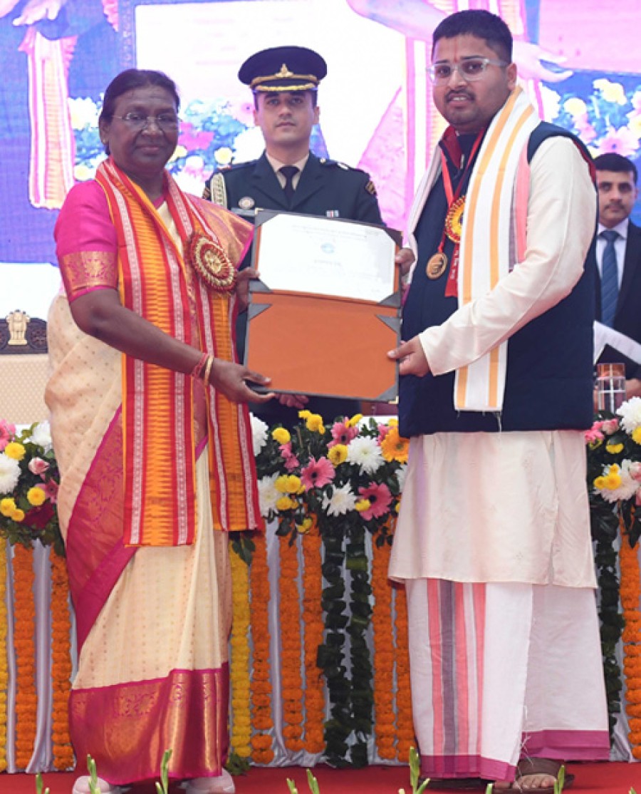 राष्ट्रपति द्रौपदी मुर्मू ने कहाकि जिस तरह आज विश्व में कई विश्वविद्यालय कस्बे स्थापित हैं, वैसेही विद्या केंद्र प्राचीन भारत में काशी, तक्षशिला और कांची जैसे स्थानों पर विद्यमान थे, लगभग एकही कालखंड के दौरान तक्षशिला में पाणिनि ने व्याकरण का निर्माण किया, कौटिल्य ने अर्थशास्त्र एवं नीतिशास्त्र के जरिए राज्य और समाज व्यवस्था से जुड़े कालजयी ग्रंथ लिखे तथा चरक ने औषधि विज्ञान की आधारभूत संहिता रची थी। राष्ट्रपति ने कहाकि वेद-वेदांग का अध्ययन अध्यापन करने वाले इस संस्थान में गार्गी, मैत्रेयी, अपाला, रोमशा, लोपामुद्रा और मंडन मिश्र की भार्या उभय भारती जैसी विदुषी महिलाओं के विषय में विशेष जानकारी और सम्मान है, इसलिए मैं चाहूंगीकि इस विश्वविद्यालय में छात्राओं को और अधिक प्रोत्साहन मिले तथा उन्हें अपनी प्रतिभा का प्रदर्शन करने के पर्याप्त अवसर मिलें। राष्ट्रपति ने दीक्षांत समारोह में स्नातक विद्यार्थियों को मेडल और डिग्रियां भी प्रदान कीं। समारोह में केंद्रीय शिक्षामंत्री धर्मेंद्र प्रधान और गणमान्य नागरिक उपस्थित थे।