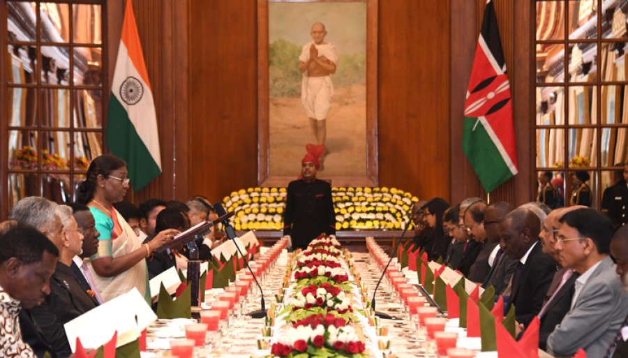 राष्ट्रपति ने कहाकि अनेक केन्याई विद्यार्थियों ने अपनी उच्च शिक्षा केलिए भारत को चुना है, केन्या में पर्यटकों की संख्या में भारतीय पहले सेही पांचवें स्थान पर हैं और यह संख्या तेजीसे बढ़ रही है। उन्होंने कहाकि ज्ञान और संस्कृति का यह आदान-प्रदान हमारे दोनों समाजों को समृद्ध बनाता है। राष्ट्रपति ने कहाकि भारत केन्या के प्रमुख व्यापार साझेदारों और निवेशकों में से एक है। उन्होंने कहाकि केन्या में भारतीय व्यवसाय फल-फूल रहे हैं और एक गतिशील द्विपक्षीय संबंध में अपना योगदान दे रहे हैं। उन्होंने कहाकि केन्या के राष्ट्रपति डॉ विलियम रुटो आपने वैश्विक दक्षिण के प्रमुख मुद्दों केलिए वैश्विक मंच पर एक प्रभावशाली वक्ता के रूपमें अपनी पहचान बनाई है, इस अवसर पर मैं पहले अफ़्रीका जलवायु शिखर सम्मेलन की मेजबानी केलिए आपको बधाई देती हूं और इस गंभीर वैश्विक मुद्दे पर आपके नेतृत्व की सराहना करती हूं। उन्होंने केन्या के राष्ट्रपति से कहाकि केन्या की विकास यात्रा में एक विश्वसनीय पार्टनर बनने और केन्या की प्राथमिकता के क्षेत्रों में आपके साथ काम करने केलिए मैं अपनी सरकार की दृढ़ प्रतिबद्धता व्यक्त करती हूं, हमारे बीच आपकी गरिमामयी उपस्थिति हम सभीको दोनों देशों के मध्य खूबसूरत एवं मजबूत साझेदारी को और सुदृढ़ करने केलिए प्रेरित करेगी।