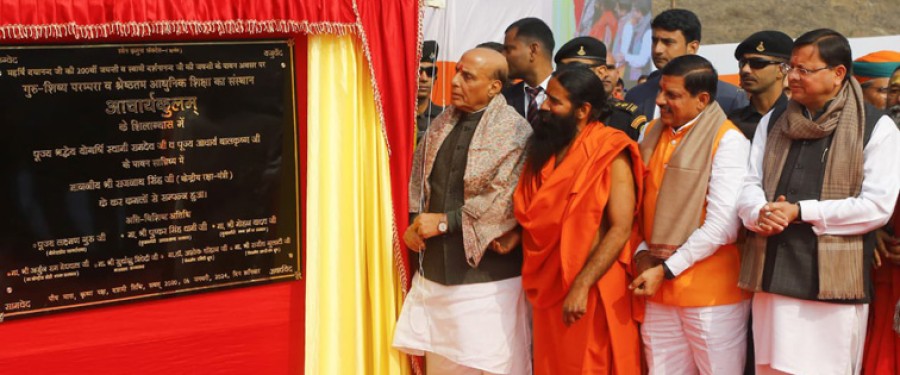 रक्षामंत्री ने कहाकि गुरुकुल इस दिशा में महत्वपूर्ण भूमिका निभा सकते हैं। रक्षामंत्री ने योग के बारेमें विशेष उल्लेख किया और बतायाकि कैसे इसके हितकारी होने के कारण संपूर्ण विश्व ने प्राचीन भारतीय पद्धति का अनुसरण किया है। उन्होंने कहाकि भारत वसुधैव कुटुंबकम की अवधारणा का पालन करता है और हमारे ज्ञान का विशाल भंडार पूरी दुनिया को समर्पित है। उन्होंने कहाकि योग की इस प्रथा को कभी केवल भारत तक ही सीमित माना जाता था, लेकिन अब इसे विश्वस्तर पर लोगों ने स्वीकार किया है, अब योग प्रणाली विश्व के लोगों के दैनिक जीवन का एक महत्वपूर्ण हिस्सा है। भारतीय साहित्य में संस्कृत के महत्वपूर्ण स्थान पर प्रकाश डालते हुए राजनाथ सिंह ने प्राचीन भारतीय भाषा को उसी तरह बढ़ावा देने की आवश्यकता पर बल दिया, जिस प्रकार से योग को लोगों के लिए सुलभ बनाया गया था। इस अवसर पर योग गुरू रामदेव, उत्तराखंड के मुख्यमंत्री पुष्कर सिंह धामी, मध्य प्रदेश के मुख्यमंत्री मोहन यादव और गणमान्य नागरिक उपस्थित थे।