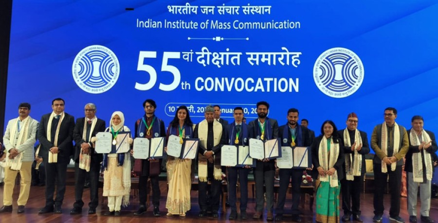 नई दिल्ली। भारतीय जन संचार संस्थान से 2021-22 और 2022-23 बैच के 700 से अधिक छात्रों ने स्नातकोत्तर डिप्लोमा प्राप्त किया। आज भारतीय जन संचार संस्थान का 55वां दीक्षांत समारोह भारत मंडपम प्रगति मैदान नई दिल्ली में आयोजित किया गया, जिसमें देश के राष्ट्रपति रहे रामनाथ कोविंद मुख्य अतिथि थे। स्नातकोत्तर डिप्लोमाधारी आईआईएमसी दिल्ली, आईआईएमसी ढेंकनाल, आईआईएमसी आइजोल, आईआईएमसी अमरावती, आईआईएमसी कोट्टायम और आईआईएमसी जम्मू से हैं। इनको हिंदी पत्रकारिता, अंग्रेजी पत्रकारिता, उड़िया पत्रकारिता, मराठी पत्रकारिता, मलयालम पत्रकारिता, उर्दू पत्रकारिता, विज्ञापन और जनसंपर्क, रेडियो और टेलीविजन पत्रकारिता तथा डिजिटल मीडिया में स्नातकोत्तर डिप्लोमा प्रदान किए गए। इसके अलावा दोनों बैच के 65 विद्यार्थियों को भी विभिन्न पुरस्कारों से सम्मानित किया गया।
