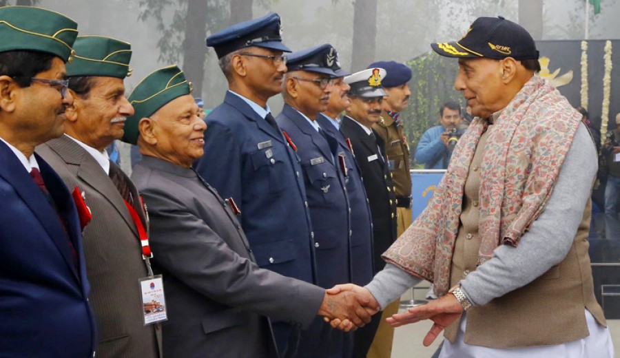 रक्षामंत्री राजनाथ सिंह ने भूतपूर्व सैनिकों के कल्याण केलिए रक्षा मंत्रालय की अटूट प्रतिबद्धता दोहराते हुए कहाकि वन रैंक वन पेंशन योजना को लागू करने से लेकर स्वास्थ्य देखभाल और पुन: रोज़गार प्रदान करने तक प्रधानमंत्री नरेंद्र मोदी सरकार काम कर रही है, उनकी भलाई सुनिश्चित करने में कोई कसर नहीं छोड़ी जा रही है। उन्होंने कहाकि जहां सरकार देश की प्रगति के और अधिक प्रयास कर रही है, वहीं लोगों की भी यह सामूहिक जिम्मेदारी हैकि वे सैनिकों और उनके आश्रितों को अपने परिवार की तरह मानें और सुनिश्चित करेंकि वे हमेशा उनके साथ खड़े रहें। उन्होंने लोगों से सेवानिवृत्त और सेवारत सैनिकों का सम्मान करने की अपनी इच्छाशक्ति को और मजबूत करने की अपील की। राजनाथ सिंह ने कहाकि भारतीय सैनिकों की बहादुरी, अखंडता, पेशेवर और मानवता का न केवल पूरा देश, बल्कि दुनिया सम्मान और मान्यता रखती है।
