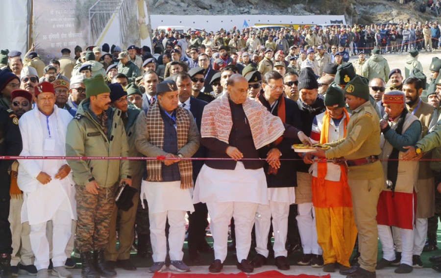 जोशीमठ (उत्तराखंड)। रक्षामंत्री राजनाथ सिंह ने उत्तराखंड की जोशीमठ-मलारी रोड पर आयोजित कार्यक्रम में 670 करोड़ रुपये की लागत से पूरी हुई सीमा सड़क संगठन की 35 बुनियादी ढांचा परियोजनाओं को समर्पित किया। रक्षामंत्री ने देश के सीमावर्ती इलाके में बुनियादी ढांचे को सशक्त बनाने केलिए सीमा सड़क संगठन की सराहना की। उन्होंने कहाकि बीआरओ सड़क एवं पुल आदि का निर्माण करके दूर-दराज के हिस्सों को भौगोलिक दृष्टि से देश के शेष अन्य हिस्सों से जोड़ रहा है और साथही दूर-दराज के गांव में रहने वाले लोगों के दिलों को बाकी नागरिकों से भी जोड़ रहा है। राजनाथ सिंह ने सीमावर्ती क्षेत्र के विकास केप्रति नरेंद्र मोदी सरकार के दृष्टिकोण का उल्लेख किया और कहाकि यह सरकार पिछली सरकारों से बिल्कुल अलग है, उन्होंने सीमावर्ती इलाकों के विकास पर ध्यान नहीं दिया, क्योंकि वे इन हिस्सों को देश का अंतिम भाग मानते थीं, वहीं दूसरी ओर मोदी सरकार सीमावर्ती इलाकों को भारत का चेहरा एवं पहचान मानती है। रक्षामंत्री ने कहाकि यही कारण हैकि हम इन क्षेत्रों में विश्वस्तरीय बुनियादी ढांचा बनाया जाना सुनिश्चित कर रहे हैं।