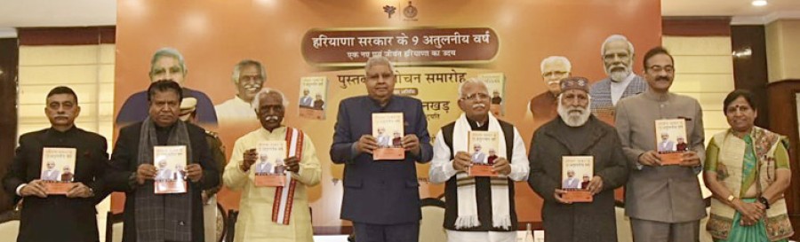 उपराष्ट्रपति जगदीप धनखड़ ने हरियाणा सरकार की उपलब्धियों की सराहना करते हुए कहाकि हरियाणा की मनोहरलाल खट्टर सरकार ने सरकारी नौकरी की भर्ती प्रक्रिया को ईमानदार और पारदर्शी बनाकर उदाहरण पेश किया है। उन्होंने कहाकि एक समय था, जब आम बालक-बालिका को लगता थाकि योग्यता से नौकरी नहीं मिलेगी, कोई दूसरा रास्ता अपनाना पड़ेगा, लेकिन दशकों की ये संस्कृति बदली है और यह काम आसान नहीं था, आज हरियाणा प्रांत इस मामले में देश में रोल मॉडल है। उन्होंने हरियाणा को उन्नतशील राज्य बताते हुए कहाकि गुरुग्राम भारत को पूरे विश्व के सामने रख रहा है और गुरुग्राम का कॉरपोरेट सेक्टर मुंबई की बराबरी कर रहा है। उपराष्ट्रपति ने कहाकि भारत का अमृतकाल आज गौरवकाल है, हमारा कर्तव्यकाल है और यह वह कालखंड है, जिसमें भारत की वह मजबूत नींव रखी जा रही है, जो सुनिश्चित करेगीकि 2047 का भारत 'विकसित भारत' होगा और सबसे ऊपर होगा। उपराष्ट्रपति ने कहाकि पहले भारत में घोटालों के समाचार आते थे, विश्व में हमारी अर्थव्यवस्था की स्थित चिंताजनक मानी जाती थी, आज हम दुनिया की पांचवी बड़ी महाशक्ति हैं और आनेवाले 2-3 साल में भारत दुनिया की तीसरी बड़ी महाशक्ति होगा।