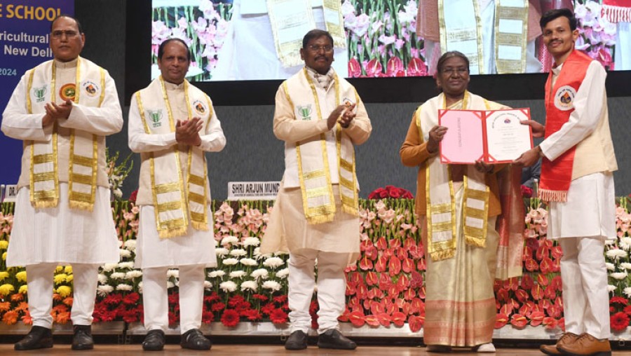द्रौपदी मुर्मु ने कहाकि कृषि एकमात्र ऐसा क्षेत्र था, जिसने भारत के सकल घरेलू उत्पाद में सकारात्मक वृद्धि दिखाई। द्रौपदी मुर्मु ने कहाकि मृदा स्वास्थ्य कार्ड योजना किसानों केलिए एक बहुत लाभदायक योजना है, जिसके माध्यम से मृदा स्वास्थ्य की वर्तमान स्थिति का आकलन किया जा सकता है। उन्होंने उल्लेख कियाकि प्रधानमंत्री फसल बीमा योजना से सरकार फसल क्षति में बीमा कवर प्रदान करती है, ताकि किसानों की आय को स्थिर करने में मदद मिल सके, परम्परागत कृषि विकास योजना केतहत जैविक खेती को भी बढ़ावा दिया जा रहा है, जिसके परिणामस्वरूप मृदा स्वास्थ्य में सुधार हुआ है। उन्होंने कहाकि किसान सम्पदा योजना से देश में खाद्य प्रसंस्करण को व्यापक बढ़ावा मिलने केसाथ किसानों को बेहतर मूल्य पाने में सहायता मिलेगी, यह किसानों की आमदनी दोगुनी करने की दिशामें एक बड़ा और महत्वपूर्ण कदम सिद्ध होगा। दीक्षांत समारोह में कृषि विज्ञान के 26 विषयों में 5 विदेशी छात्रों सहित 543 छात्र-छात्राओं को डिग्री प्रदान की गई, साथही प्रतिभावान विद्यार्थियों को सम्मानित किया गया। समारोह में केंद्रीय कृषि एवं किसान कल्याण मंत्री अर्जुन मुंडा भी उपस्थित थे।