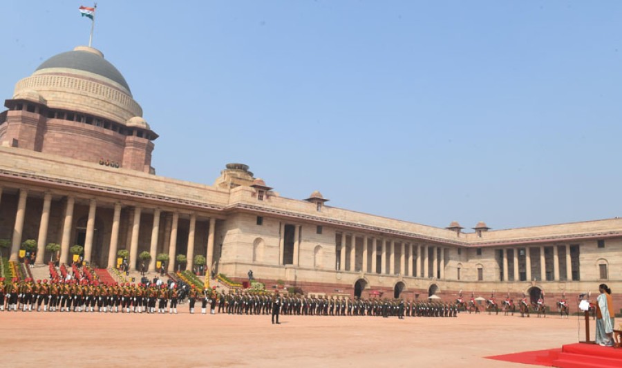 नई दिल्ली। राष्ट्रपति द्रौपदी मुर्मु राष्ट्रपति भवन में तैनात आर्मी गार्ड बटालियन की अदला-बदली और औपचारिक परिवर्तन की साक्षी बनी, जिसमें सेरेमोनियल आर्मी गार्ड बटालियन के रूपमें सिख रेजिमेंट की 6वीं बटालियन ने अपना कार्यकाल पूरा होने पर 5वीं गोरखा राइफल्स की पहली बटालियन को कार्यभार सौंप दिया। राष्ट्रपति द्रौपदी मुर्मु ने इस अवसर पर सैन्य परंपराओं के उच्चतम मानकों का पालन करने और राष्ट्रपति भवन में पूर्ण समर्पण केसाथ अपना कर्तव्य निभाने केलिए सिख रेजिमेंट की 6वीं बटालियन के अधिकारियों और सैनिकों की सराहना की।