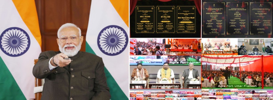 जयपुर। प्रधानमंत्री नरेंद्र मोदी ने आज वीडियो कॉंफ्रेंसिंग के जरिए राजस्थान के सभी परिवारजनों को राम-राम कहते हुए 'विकसित भारत, विकसित राजस्थान' कार्यक्रम में राजस्थान के विकास केलिए करीब 17 हजार करोड़ रुपए के प्रोजेक्ट्स का शिलान्यास और लोकार्पण किया। ये प्रोजेक्ट रेल, रोड, सौर ऊर्जा, पानी और एलपीजी जैसे विकास कार्यक्रमों से जुड़े हैं। उन्होंने कहाकि ये परियोजनाएं राजस्थान के हज़ारों युवाओं को रोज़गार देने वाली हैं, इन नए प्रोजेक्ट्स केलिए राजस्थानवासियों को बहुत-बहुत बधाई और कार्यक्रम से राजस्थान की हर विधानसभा से जुड़े साथियों का अभिनंदन। उन्होंने मुख्यमंत्री भजनलाल शर्मा को भी बधाई दीकि उन्होंने टेक्नोलॉजी का इतना शानदार उपयोग करके जन-जन तक पहुंचने का उन्हें अवसर दिया है। नरेंद्र मोदी ने कहाकि कुछ दिन पहले फ्रांस के राष्ट्रपति इमैनुएल मैक्रों का जयपुर में जो स्वागत सत्कार किया गया, उसकी गूंज न सिर्फ भारतभर में, बल्कि फ्रांस में भी सुनाई दी है। उन्होंने कहाकि उन्हें याद हैकि जब विधानसभा चुनाव के समय वे राजस्थान आए थे तो उन्हें आशीर्वाद देने केलिए राजस्थानवासी भारी संख्या में उमड़ पड़े थे। उन्होंने कहाकि सभी ने मोदी की गारंटी पर विश्वास किया, डबल इंजन की सरकार बनाई और देखिए राजस्थान की डबल इंजन सरकार ने कितनी तेजीसे काम करना शुरू कर दिया है।