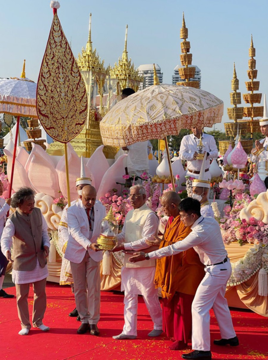 बैंकॉक। भारत के राष्ट्रीय संग्रहालय से तथागत भगवान गौतम बुद्ध और उनके दो शिष्यों के पावन अवशेषों को बैंकॉक के सनम लुआंग मंडप में विशेष रूपसे निर्मित्त मंडपम में बड़ी श्रद्धा और पवित्र मंत्रोच्चार केसाथ सार्वजनिक पूजा केलिए प्रतिष्ठापित किया गया। ये अवशेष थाईलैंड में 26 दिवसीय भव्य प्रदर्शनी के एक हिस्से के रूपमें बैंकॉक के शाही महल मैदान में थाईलैंड की संस्कृति तथा विरासत को प्रदर्शित कर रहे हैं, जिसमें भारत और थाईलैंड केबीच सांस्कृतिक सौहार्द्र और दोनों देशों के राष्ट्रीय ध्वज भी शामिल हैं। गौरतलब हैकि बिहार के राज्यपाल राजेंद्र विश्वनाथ आर्लेकर भगवान बुद्ध के पावन अवशेषों के साथ पहले ही थाईलैंड पहुंच चुके हैं। उन्होंने भगवान बुद्ध के अवशेष थाईलैंड के प्रधानमंत्री श्रेथा थाविसिन को सुपुर्द किए, जबकि उनके शिष्य अरहंत सारिपुत्र और महा मौदगलायन के अवशेष भारत सरकार में मंत्री डॉ वीरेंद्र कुमार ने थाईलैंड के उपप्रधानमंत्री सोमसक थेपसुतिन और थाईलैंड के संस्कृति मंत्री को मंडपम में प्रतिष्ठापित करने केलिए सुपुर्द किए।