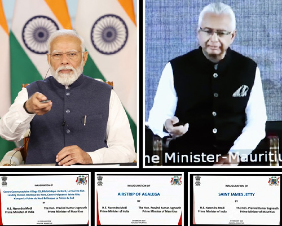 नई दिल्ली। प्रधानमंत्री नरेंद्र मोदी और मॉरीशस के प्रधानमंत्री प्रविंद जगन्नाथ ने आज अगलेगा द्वीप समूह में हवाई पट्टी और जेटी का संयुक्त रूपसे उद्घाटन किया है। प्रधानमंत्री नरेंद्र मोदी ने वीडियो कॉंफ्रेंसिंग के जरिए कार्यक्रम को संबोधित करते हुए कहाकि आज का दिन भारत मॉरीशस विकास साझेदारी केलिए एक विशेष महत्व रखता है। उन्होंने कहाकि मुझे खुशी हैकि 2015 में अगलेगा के वासियों के विकास केलिए मैंने जो प्रतिबद्धता की थी, आज हम उसे पूरा होते हुए देख रहे हैं। उन्होंने कहाकि भारत में आजकल इसे 'मोदी की गारंटी' कहा जा रहा है। नरेंद्र मोदी ने कहाकि मुझे विश्वास हैकि जिन सुविधाओं का हमने मिलकर लोकार्पण किया है, इनसे जीवन जीने में आसानी को बल मिलेगा, मॉरीशस के उत्तर और दक्षिण क्षेत्रों में कनेक्टिविटी बढ़ेगी, मुख्य भूमि से प्रशासनिक सहयोग आसान होगा, सामाजिक और आर्थिक विकास को बल मिलेगा एवं मेडिकल उपचार केलिए आपातकालीन निकास और शिक्षा केलिए स्कूली बच्चों की यात्रा में सहजता होगी।