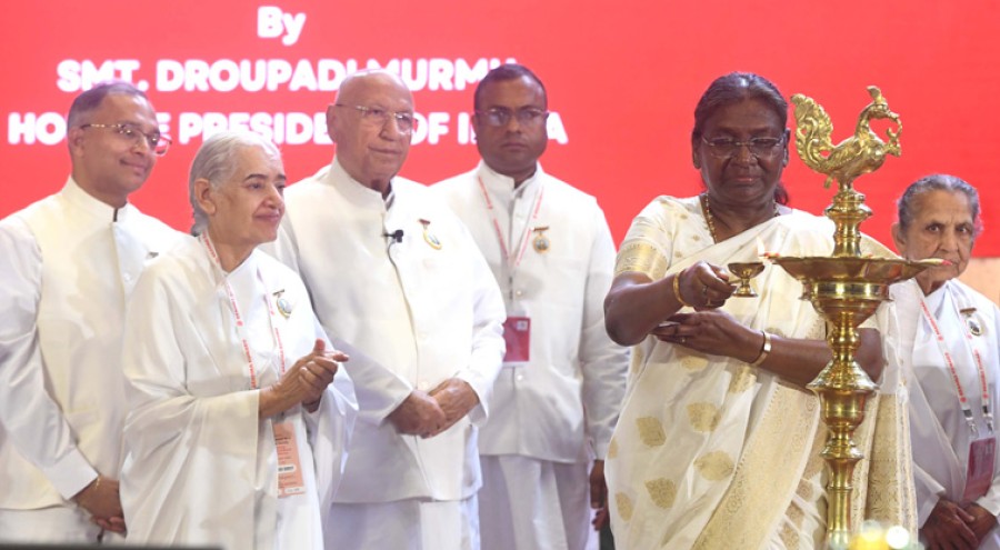 राष्ट्रपति द्रौपदी मुर्मु ने कहाकि आध्यात्मिक सशक्तिकरण ही वास्तविक सशक्तिकरण है। उन्होंने कहाकि जब किसी धर्म या संप्रदाय के अनुयायी आध्यात्मिकता से भटक जाते हैं तो वे कट्टरता के शिकार और अस्वस्थ मानसिकता से ग्रस्त हो जाते हैं, आध्यात्मिक मूल्य सभी धर्मों के लोगों को एक-दूसरे से जोड़ते हैं। राष्ट्रपति ने कहाकि स्वार्थ से ऊपर उठकर लोककल्याण की भावना से काम करना आंतरिक आध्यात्मिकता की सामाजिक अभिव्यक्ति है, जनहित केलिए परोपकार करना सबसे महत्वपूर्ण आध्यात्मिक मूल्यों में से एक है। राष्ट्रपति ने कहाकि दुनिया के कई हिस्सों में भय, आतंक और युद्ध को बढ़ावा देने वाली ताकतें बहुत सक्रिय हैं, ऐसे माहौल में ब्रह्माकुमारी संस्था ने 100 से अधिक देशों में कई ब्रह्माकुमारी केंद्रों के माध्यम से मानवता के सशक्तीकरण केलिए एक प्रभावी मंच प्रदान किया है। द्रौपदी मुर्मु ने कहाकि आध्यात्मिक मूल्यों को बढ़ावा देकर विश्वबंधुत्व को मजबूत करने का यह एक अमूल्य प्रयास है।