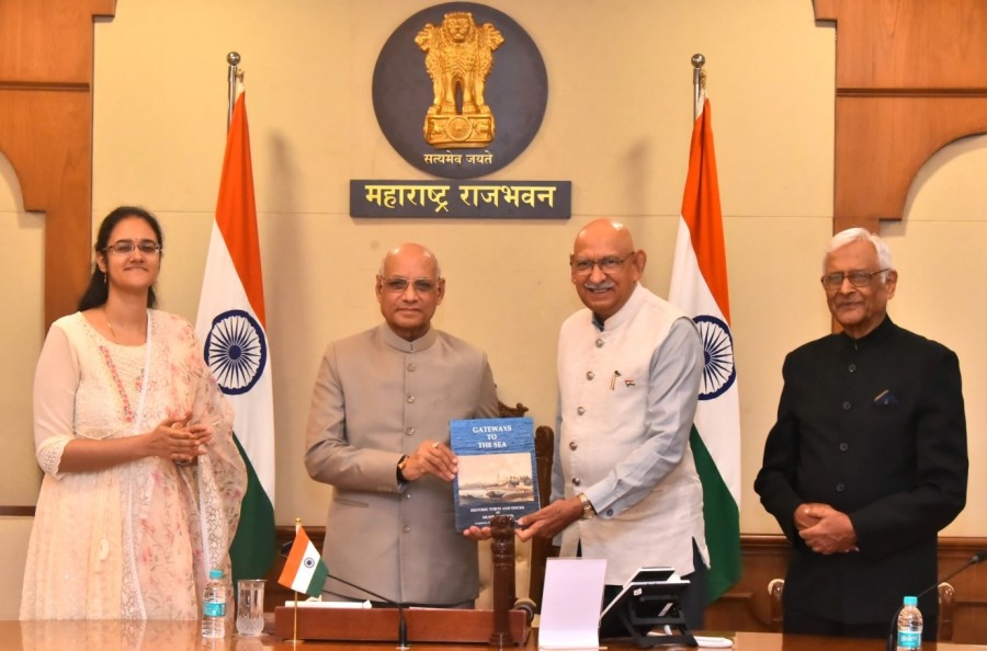 मुंबई। महाराष्ट्र के राज्यपाल रमेश बैस ने राजभवन मुंबई में मैरीटाइम मुंबई म्यूजियम सोसाइटी द्वारा संकलित प्रसिद्ध लेखकों के 18 लेखों की पुस्तक 'गेटवे टू द सीः हिस्टोरिक पोर्ट्स एंड डॉक्स ऑफ मुंबई रीजन' का विमोचन किया। पुस्तक सूचना और प्रसारण मंत्रालय भारत सरकार के प्रकाशन विभाग ने प्रकाशित की है। राज्यपाल रमेश बैस ने इस अवसर पर एमएमएमएस और 17 लेखकों और दो संपादकों को सम्मानित भी किया। उन्होंने मुंबईकरों को उनके प्राचीन समुद्री इतिहास के बारेमें जनाने केलिए भी प्रोत्साहित किया। एशियाटिक सोसाइटी के सहयोग से प्रकाशन विभाग ने राजभवन के दरबार हॉल में पुस्तक की प्रस्तुति दी। पुस्तक विमोचन कार्यक्रम में इतिहासकार और इतिहास के उत्साही इच्छुक लोग शामिल हुए।