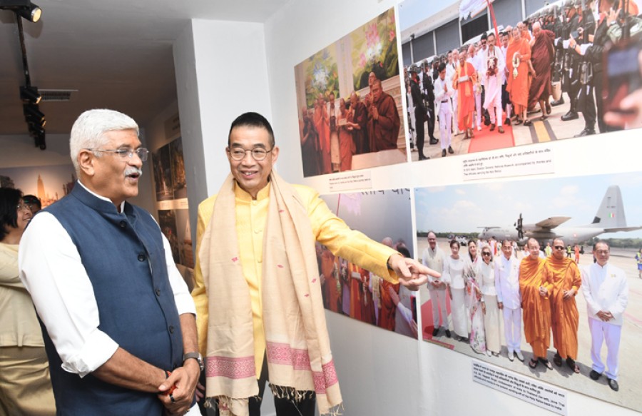 भगवान बुद्ध और उनके शिष्यों के पवित्र अवशेषों को सनम लुआंग मंडप (बैंकॉक), हो कुम लुआंग, रॉयल पार्क राजप्रुक (चियांग माई), वाट महा वानाराम (उबोन रतचथानी), वाट महा थाट वाचिरामोंगकोल (क्राबी) में प्रदर्शनी के 25 दिन के दौरान सार्वजनिक पूजा केलिए रखा गया था, जहां थाईलैंड और उसके पड़ोसी देशों के विभिन्न हिस्सों से चार मिलियन से अधिक भक्तों ने पवित्र अवशेषों को श्रद्धांजलि अर्पित की थी। थाइलैंड के सभी चार स्थानों पर थाई समुदायों और भारतीय प्रवासियों ने विस्तृत और रंगीन औपचारिक जुलूस और जप समारोह आयोजित किए थे। यह प्रदर्शनी थाईलैंड साम्राज्य और भारत सरकार के संस्कृति मंत्रालय ने संयुक्त रूपसे विदेश मंत्रालय, थाईलैंड में भारतीय दूतावास, राष्ट्रीय संग्रहालय, अंतर्राष्ट्रीय बौद्ध परिसंघ और महाबोधि समिति के सक्रिय सहयोग से आयोजित की थी। फोटोग्राफिक प्रदर्शनी के उद्घाटन पर गजेंद्र सिंह शेखावत ने थाईलैंड, इंडोनेशिया, फिलीपींस, कंबोडिया और कई बौद्ध देशों के प्रमुखों और राजनयिकों से मुलाकात की।